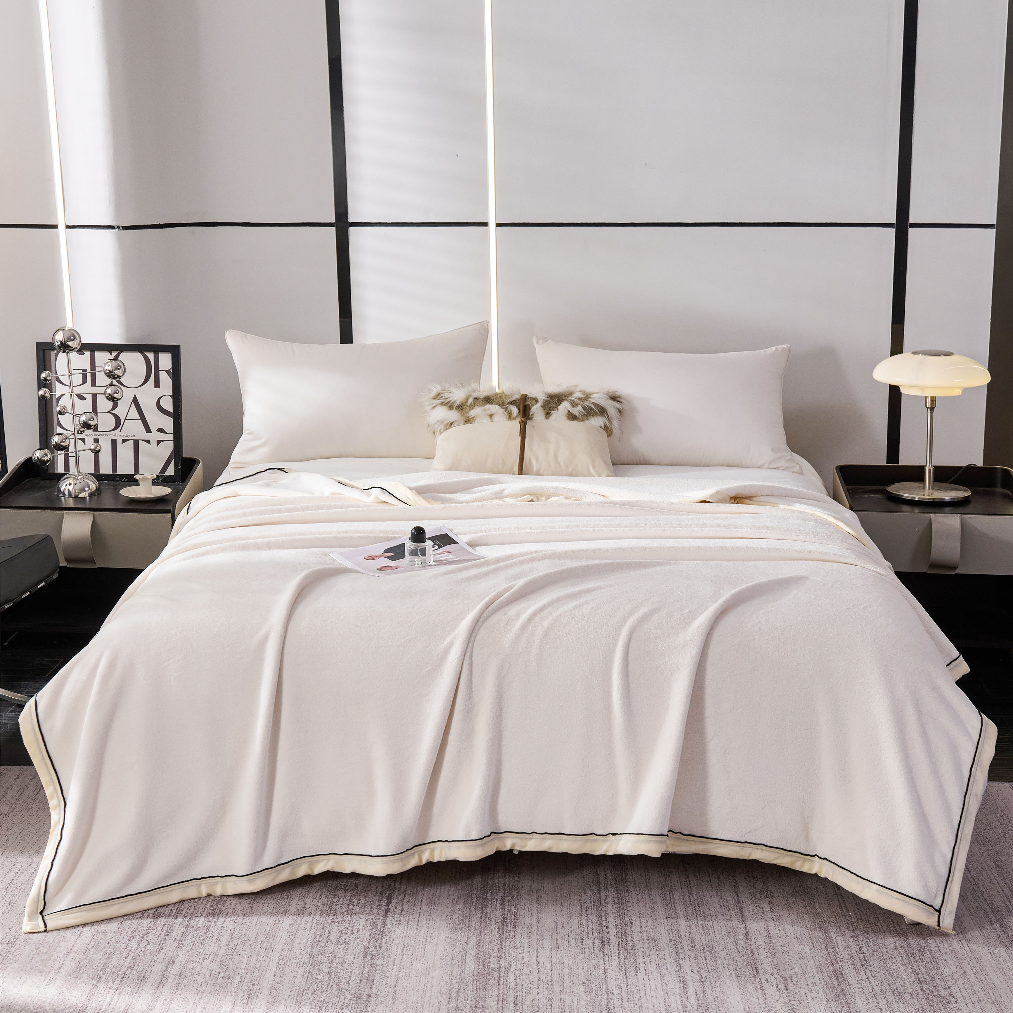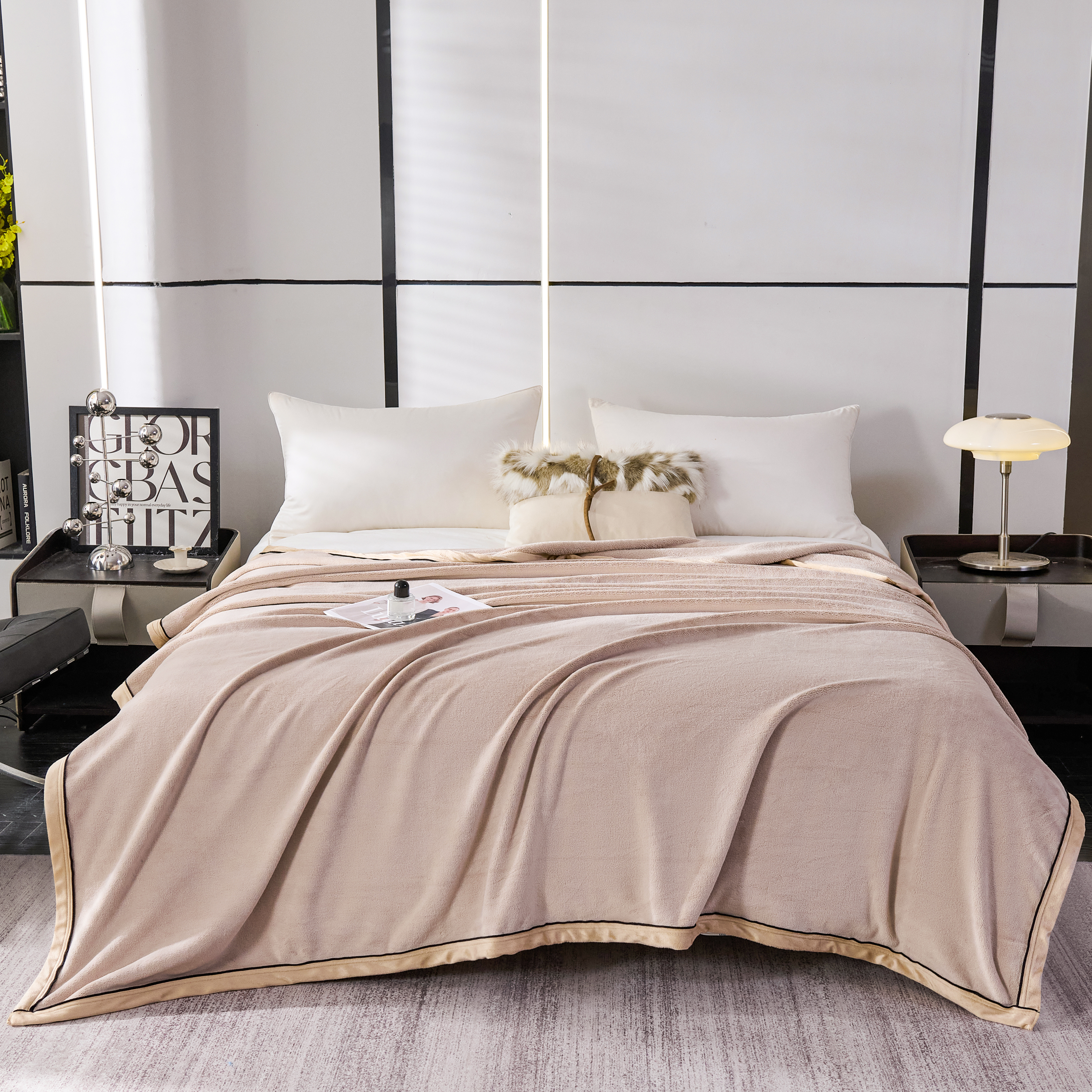 (总)馨米莱家纺2025新款提花兔毛复合毯,高级灰,米白色,深灰色,驼褐色,香芋紫,樱花粉