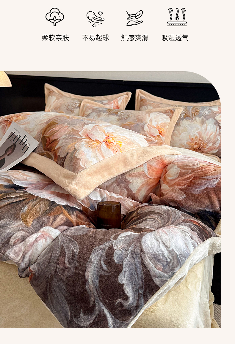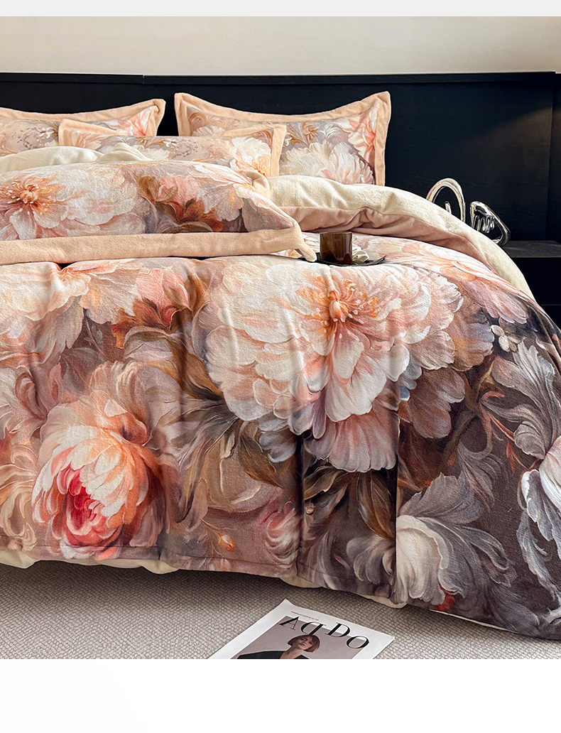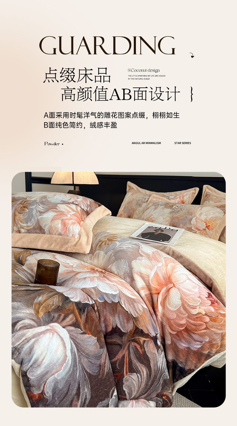 诺梵家纺 2025新款8斤加厚保暖金貂绒牛奶绒印花四件套 花枝如梦,花枝如梦