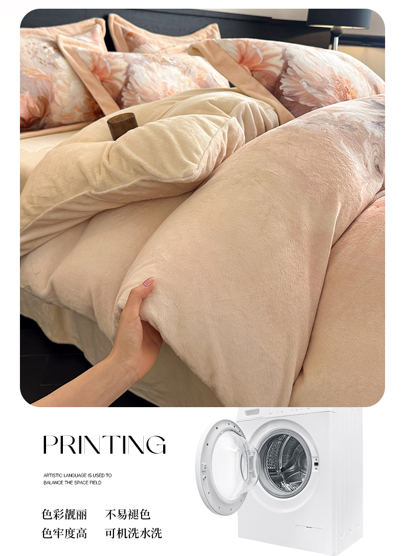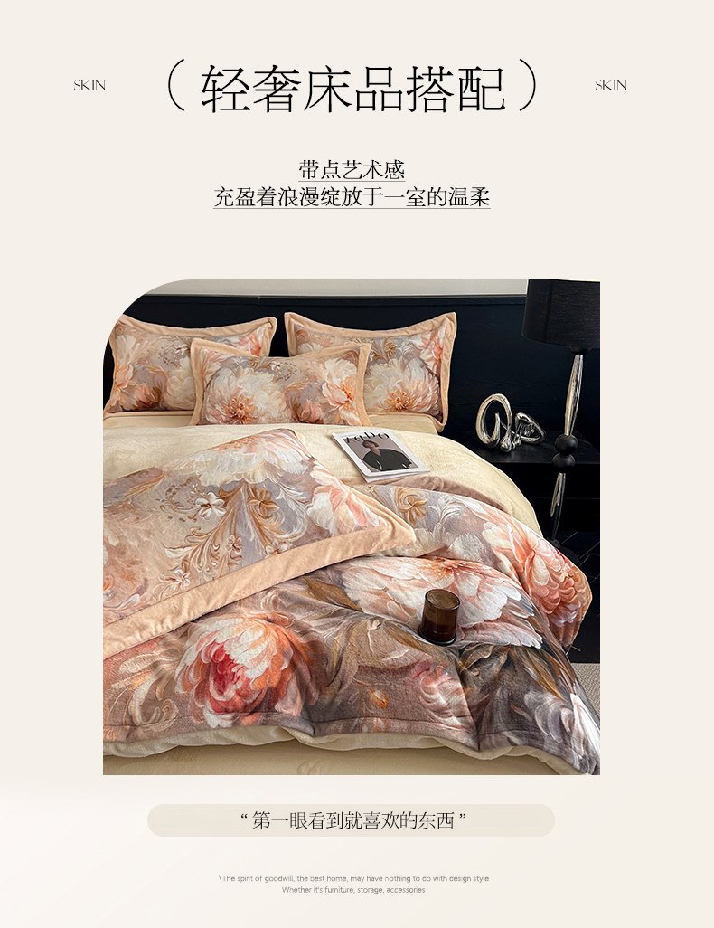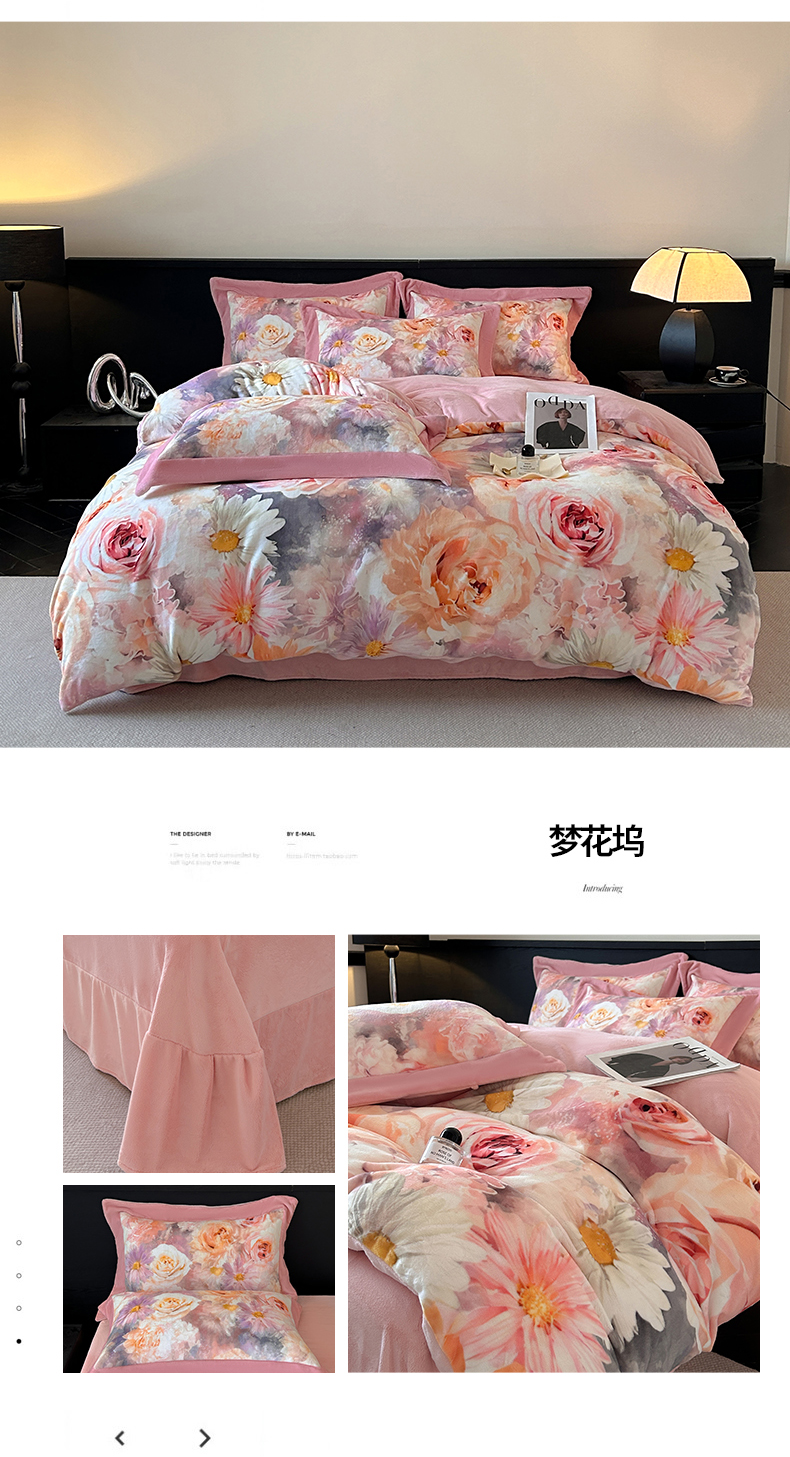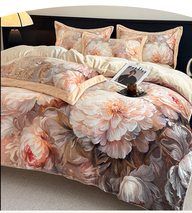 诺梵家纺 2025新款8斤加厚保暖金貂绒牛奶绒印花四件套 花枝如梦,花枝如梦