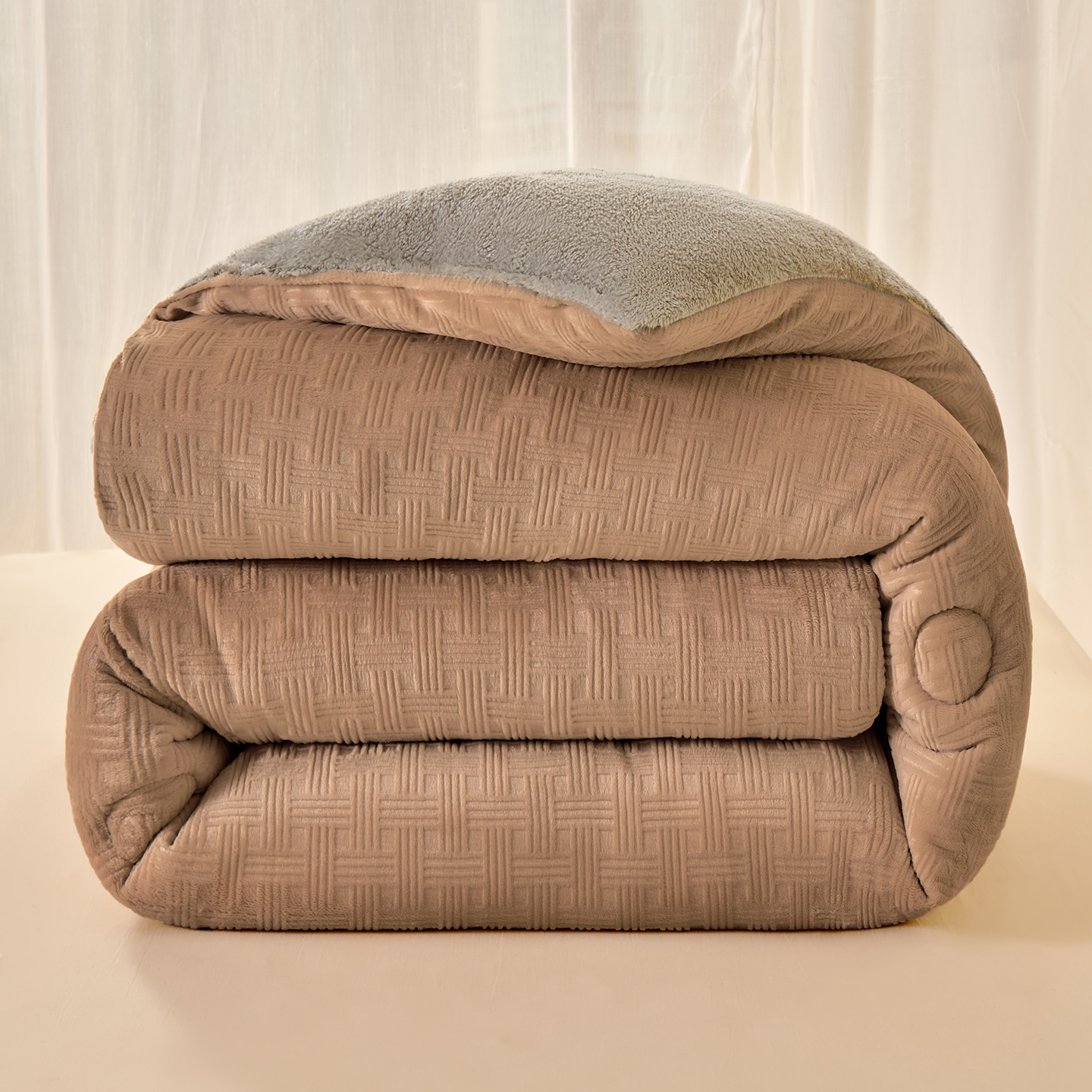 • 91家纺网 家纺一手货源 找家纺 栩裕纺织 2026新款华夫格牛奶绒北极绒冬被被子被芯 绿色