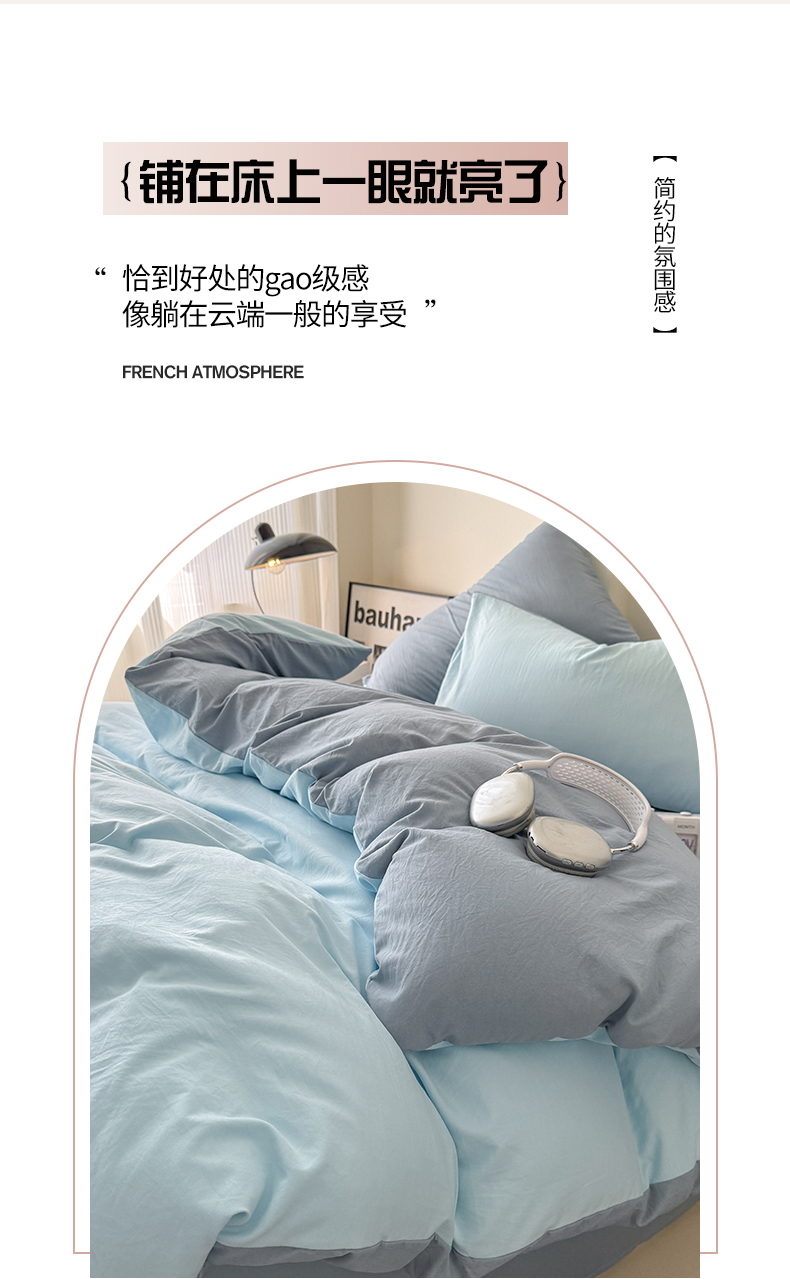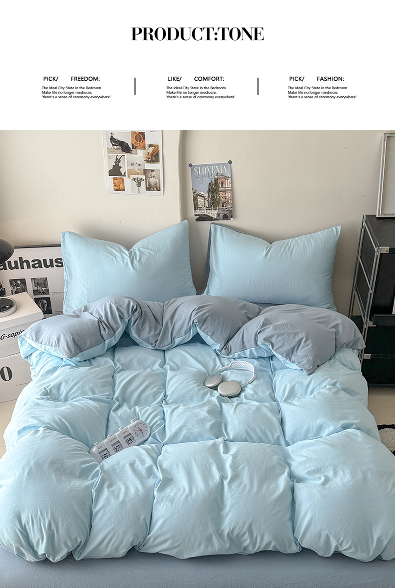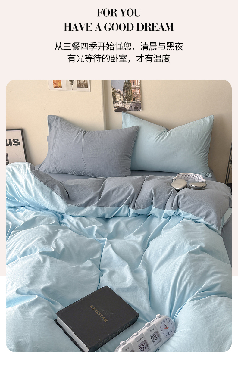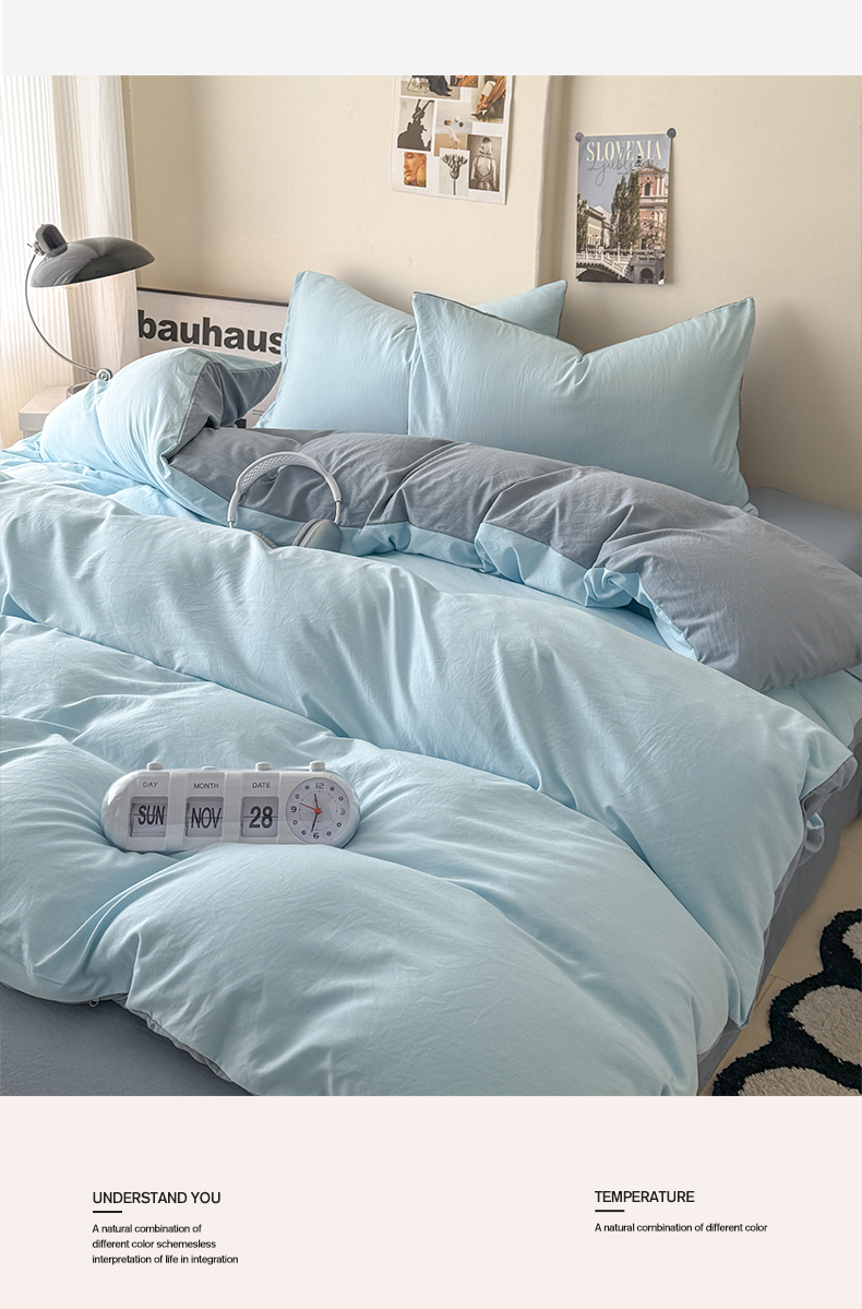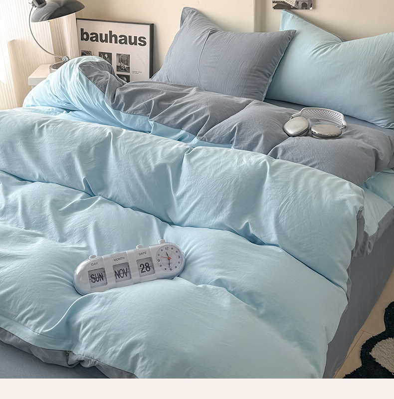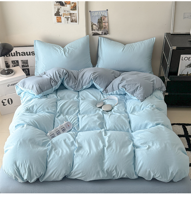 当前位置: 91家纺网 > 商品网购 > 床品套件 > 四件套 > 其它四件套 > 桔禾家纺 2025新款ins风纯色水洗棉四件套双拼水洗棉学生三件套四件套 天空蓝雾霾蓝