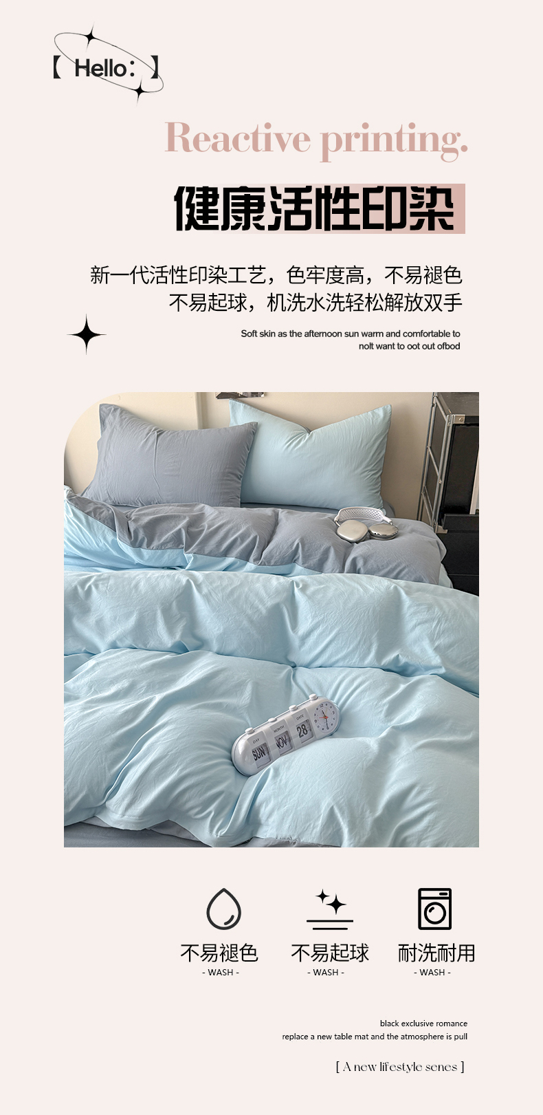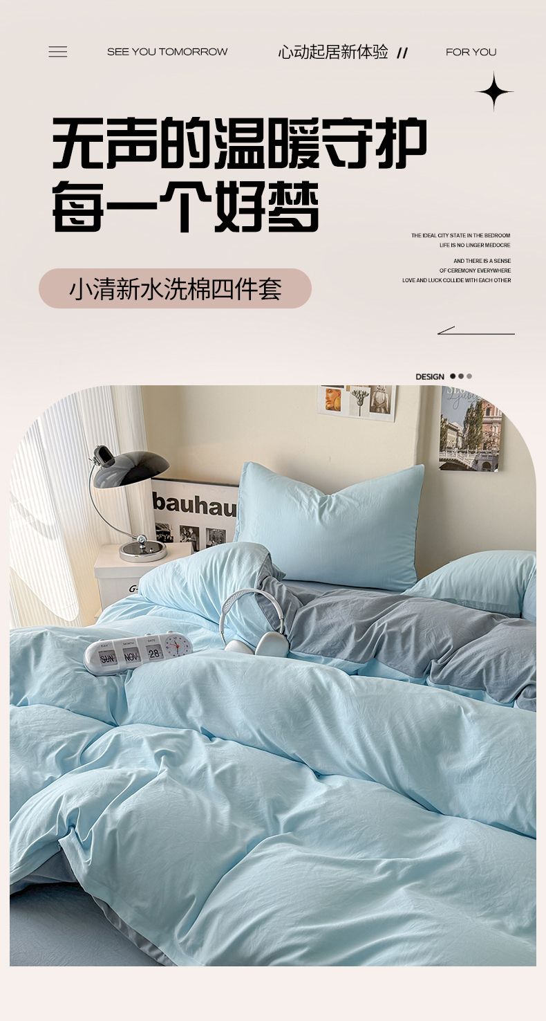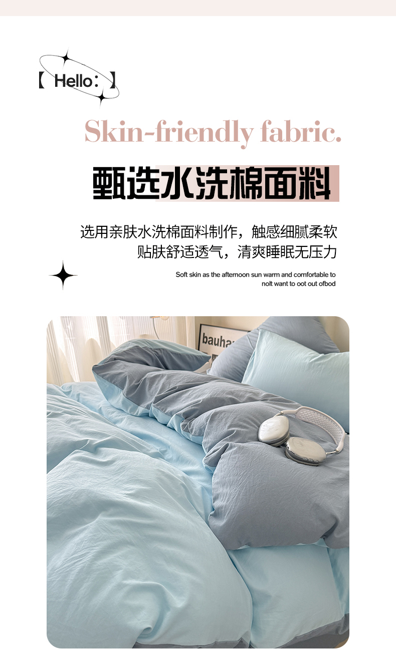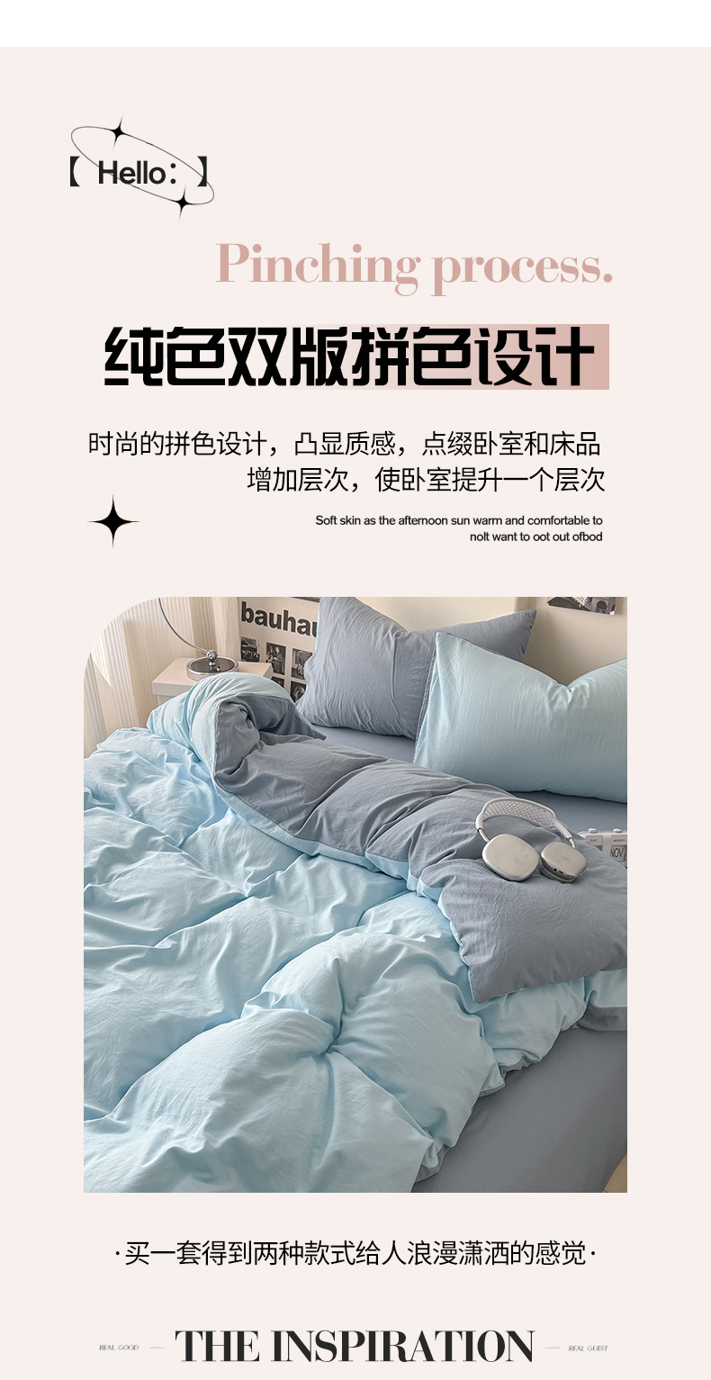 当前位置: 91家纺网 > 商品网购 > 床品套件 > 四件套 > 其它四件套 > 桔禾家纺 2025新款ins风纯色水洗棉四件套双拼水洗棉学生三件套四件套 天空蓝雾霾蓝