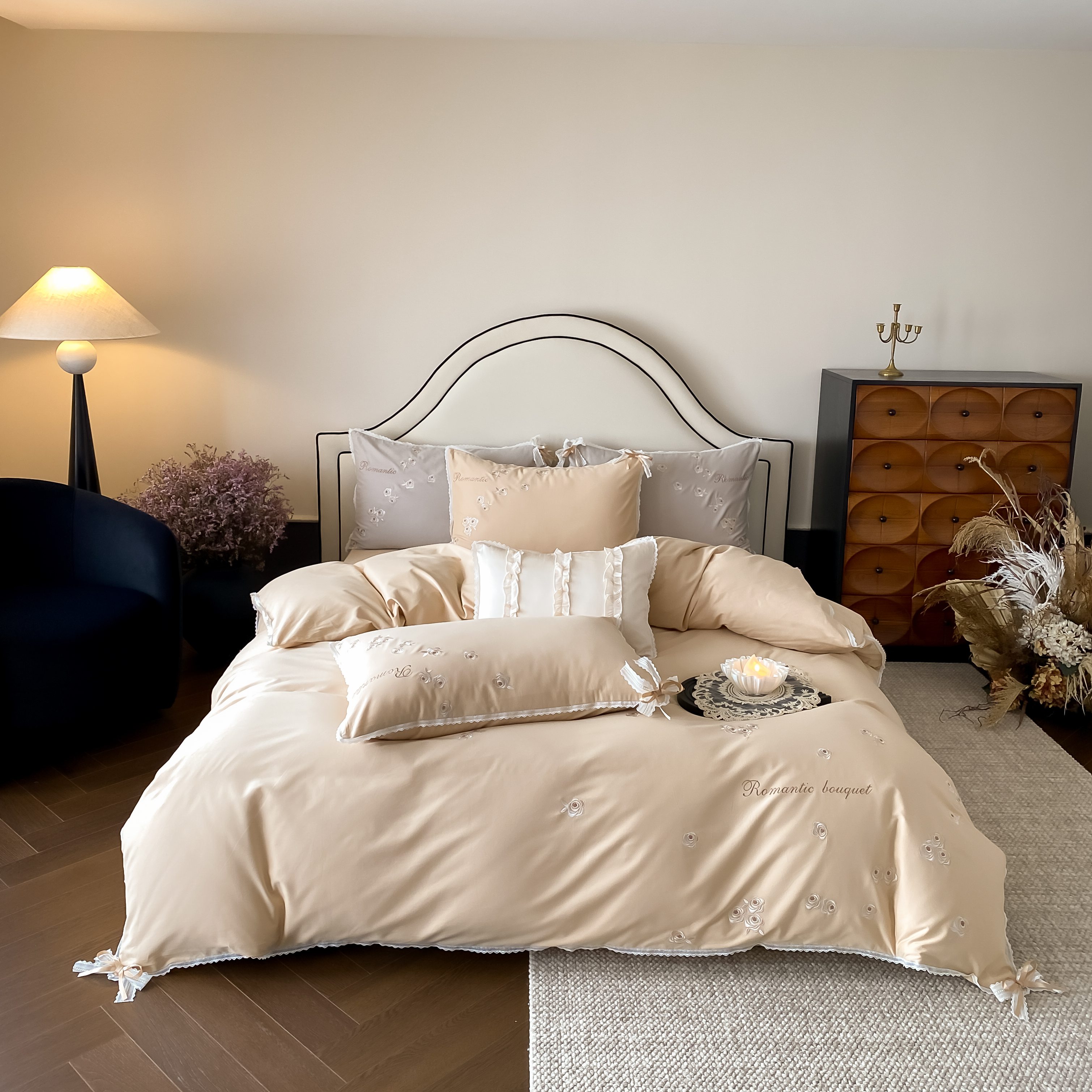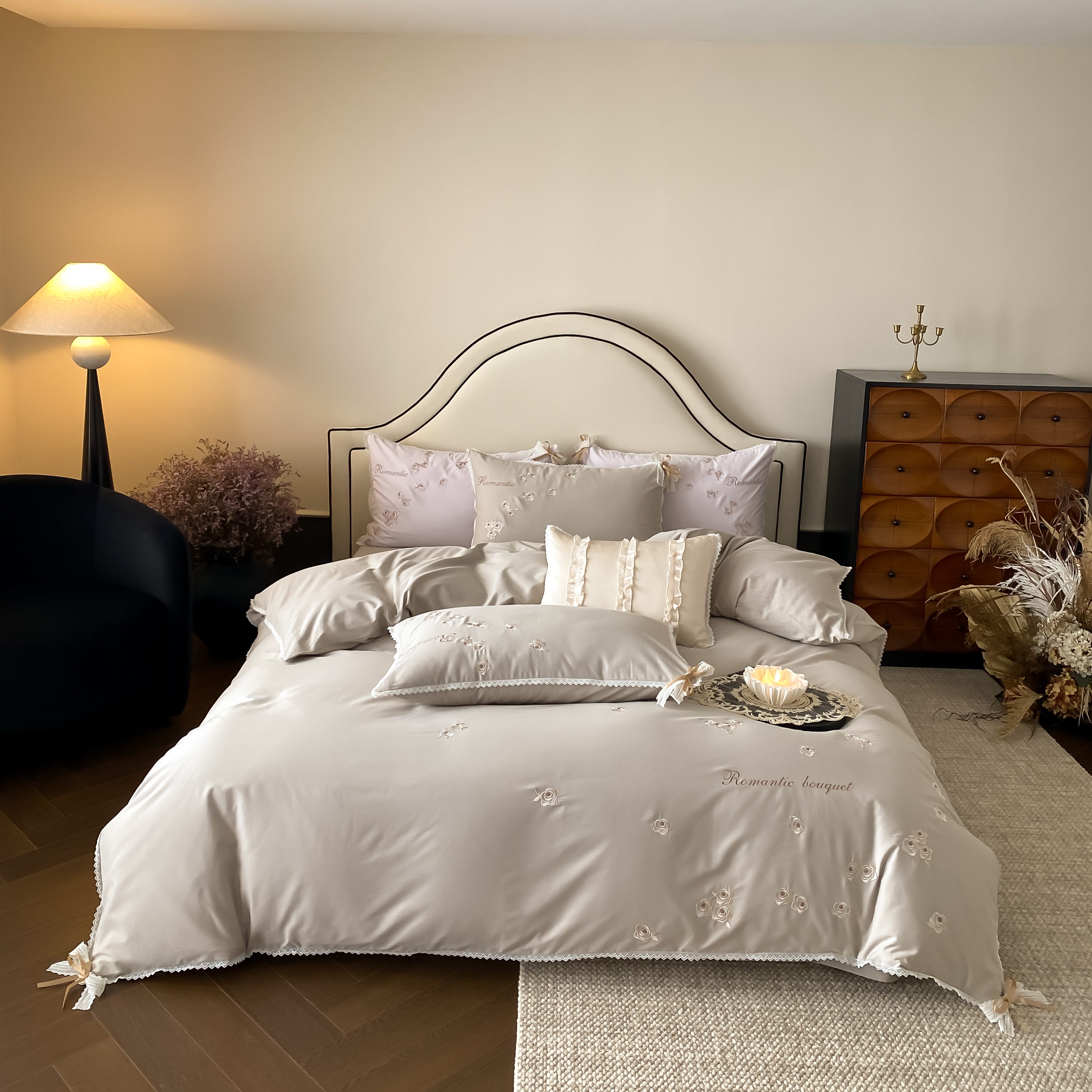 佳汐蓝家纺 2025秋冬新款新疆长绒棉全棉纯棉刺绣蕾丝四件套-场景二梦幻芭蕾 梦幻芭蕾-灰