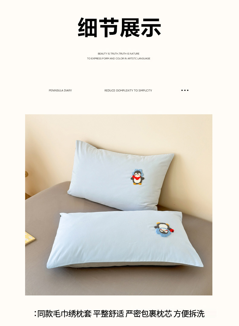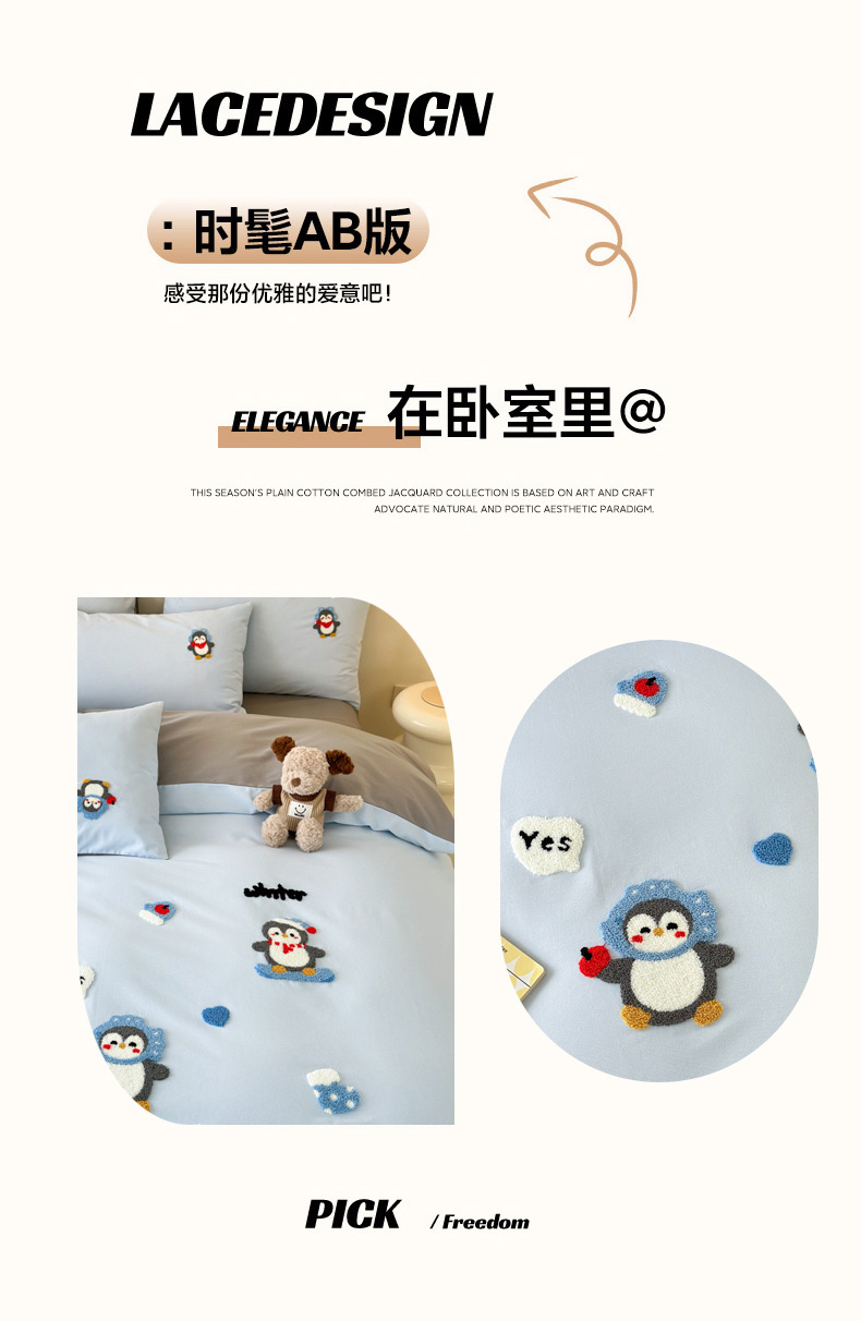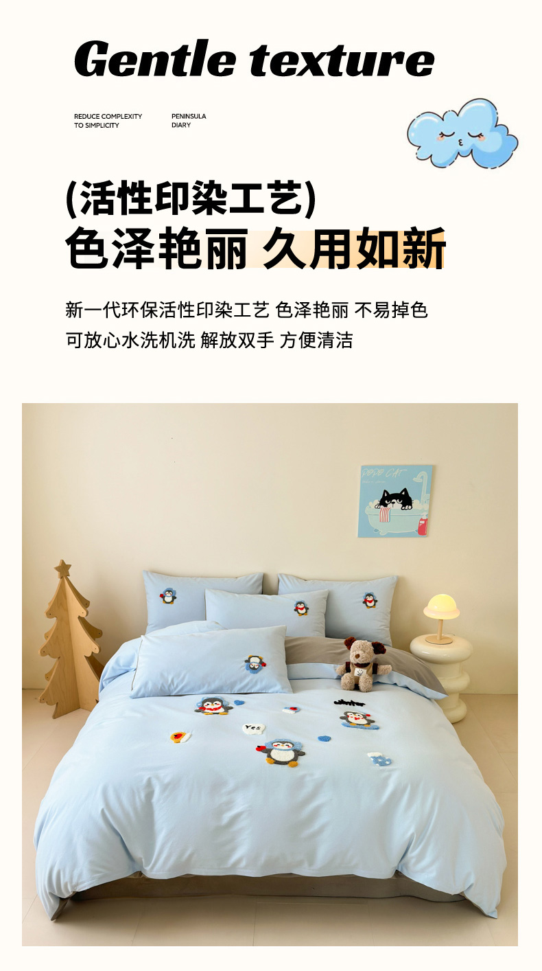当前位置: 91家纺网 > 商品网购 > 床品套件 > 四件套 > 全棉普通四件套 > 如意朵 2025新款全棉加厚磨毛绣花四件套风格一(专版花型) 追梦企鹅蓝