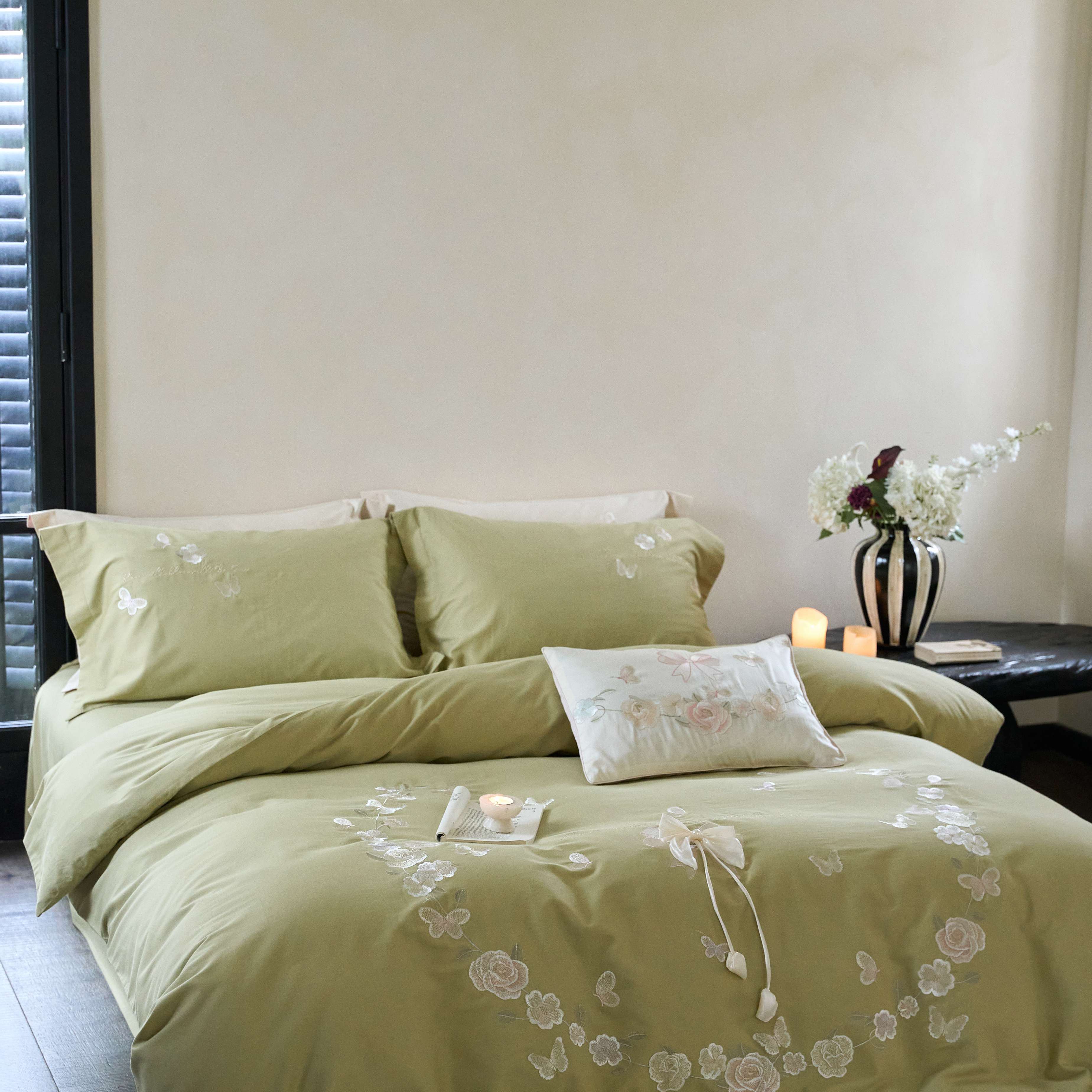 佳汐蓝家纺 2025秋冬新款刺绣长绒棉全棉纯棉磨毛四件套花序 花序-绿