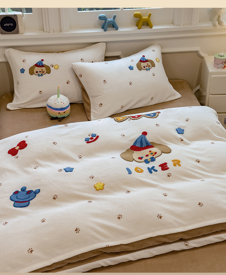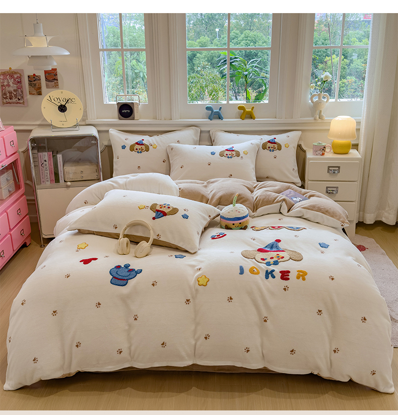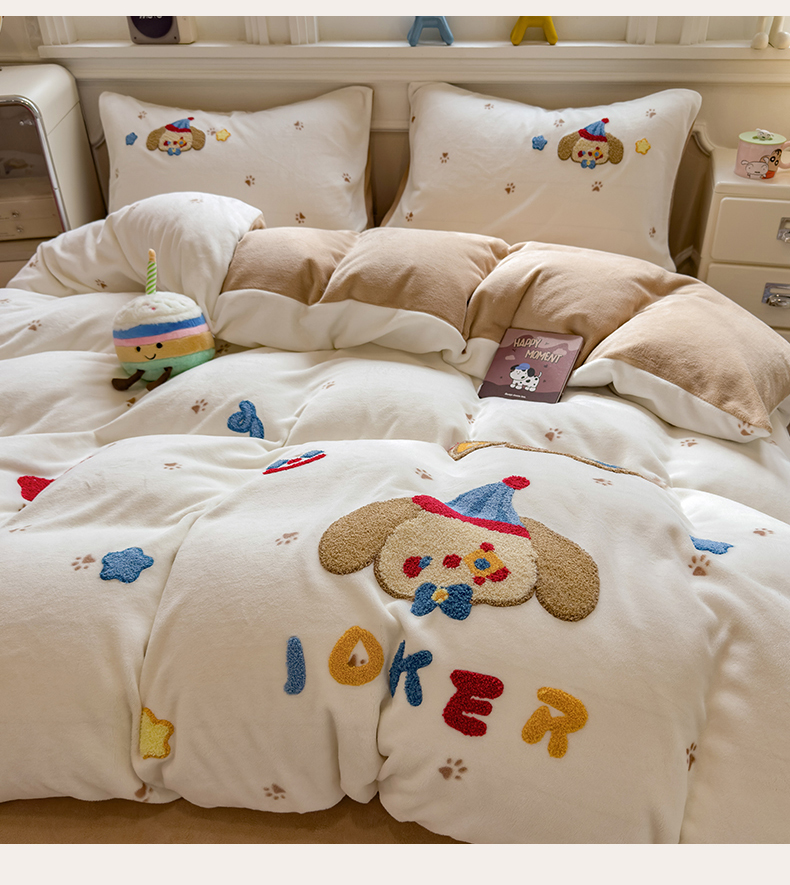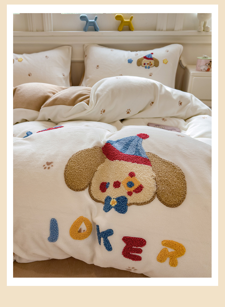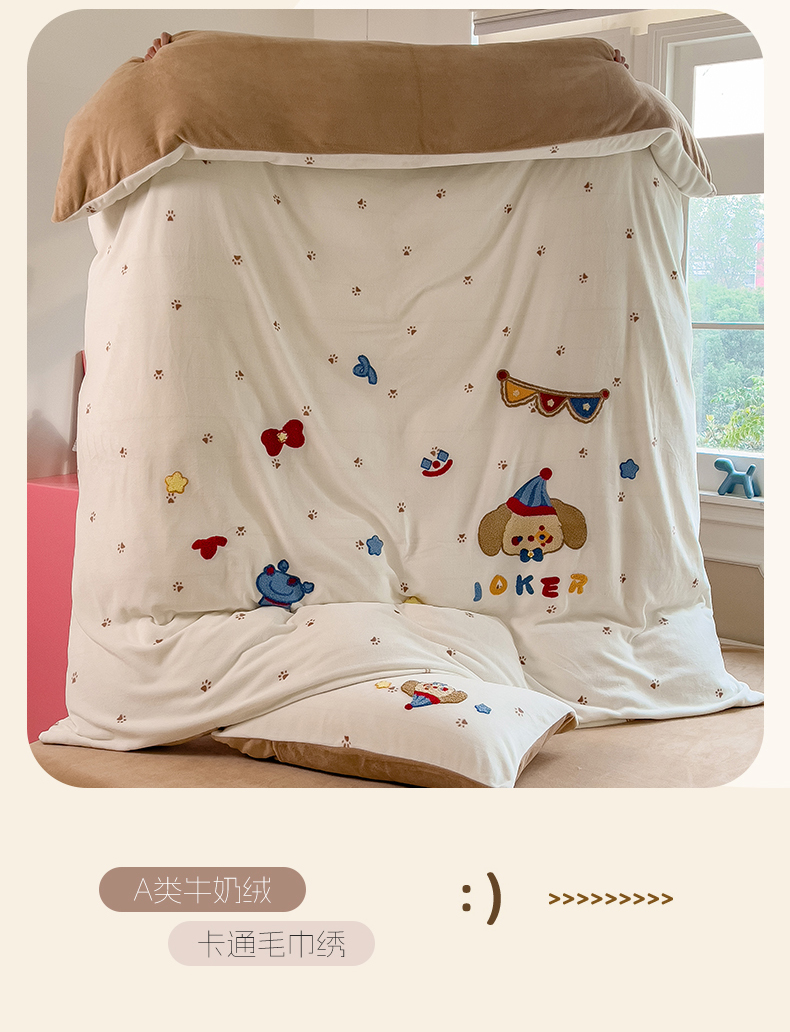 (总)兄弟坊 2025新款卡通消光牛奶绒贴布绣四件套,小狗梦乡,有趣动物园,猫咪乐园,熊熊乐园,萌犬乐园,宠物旅行,甜点旅行