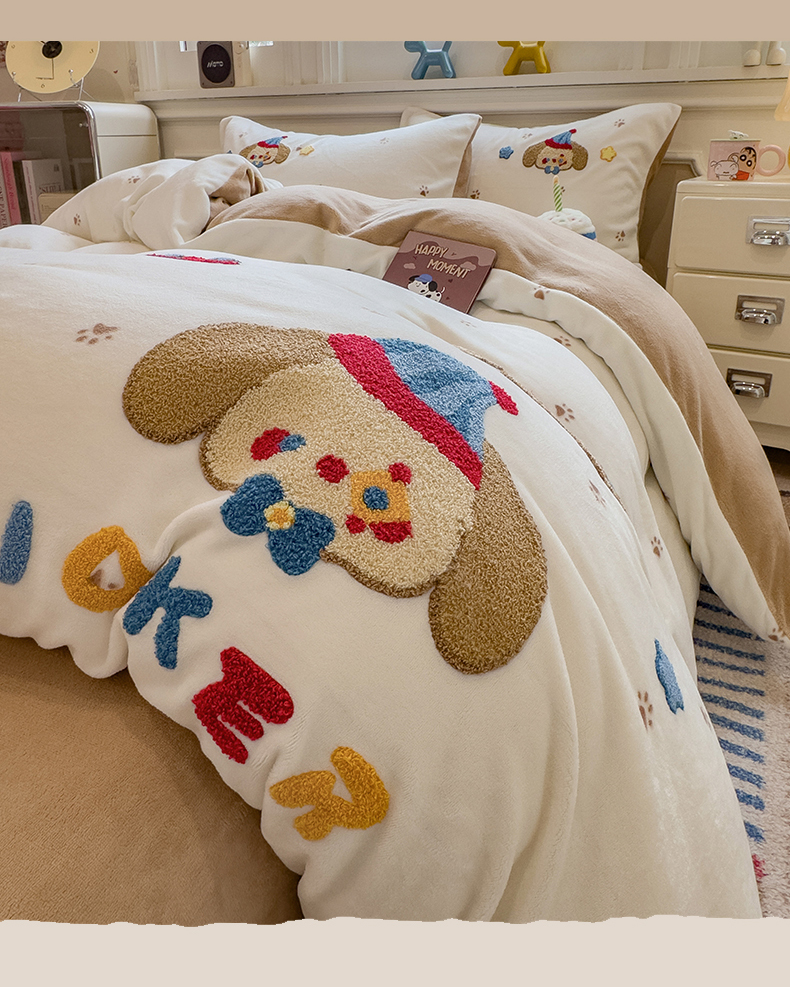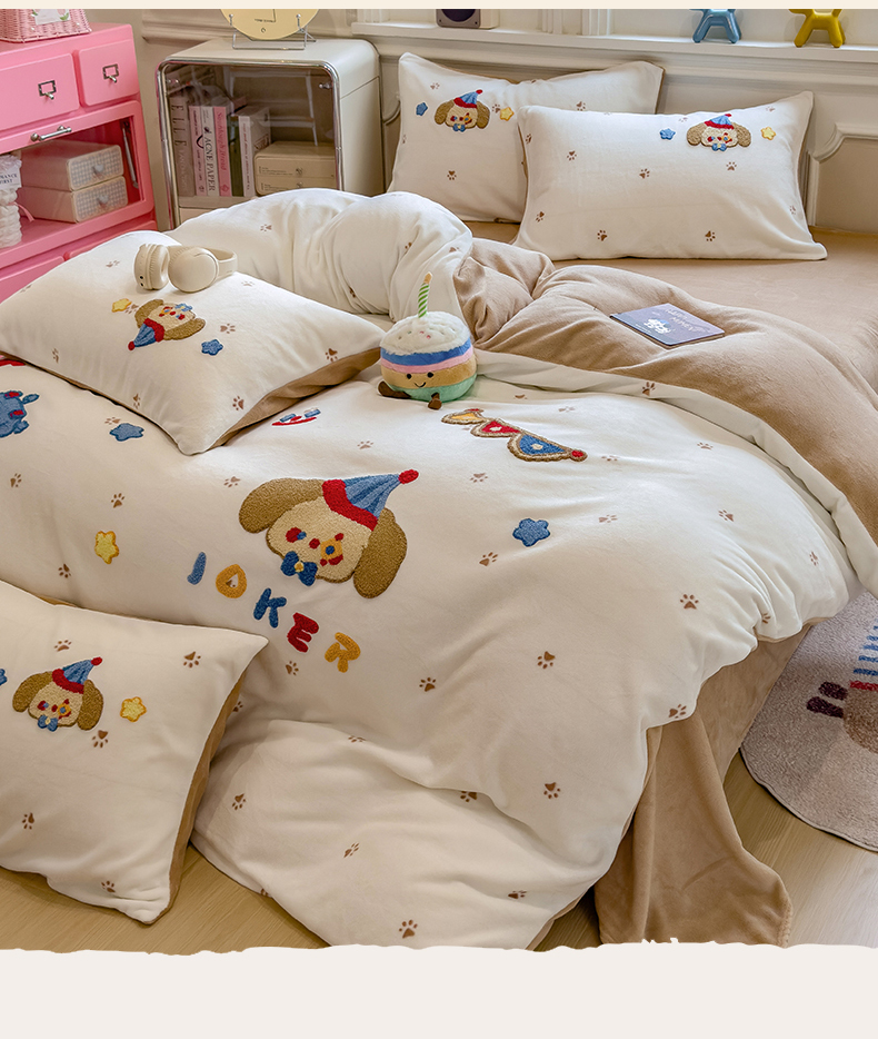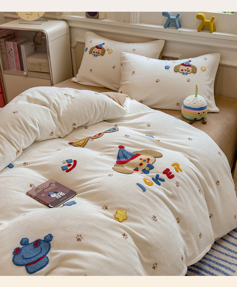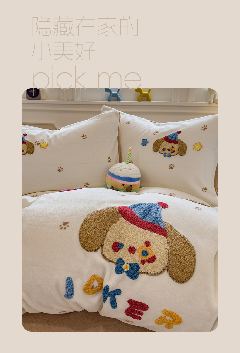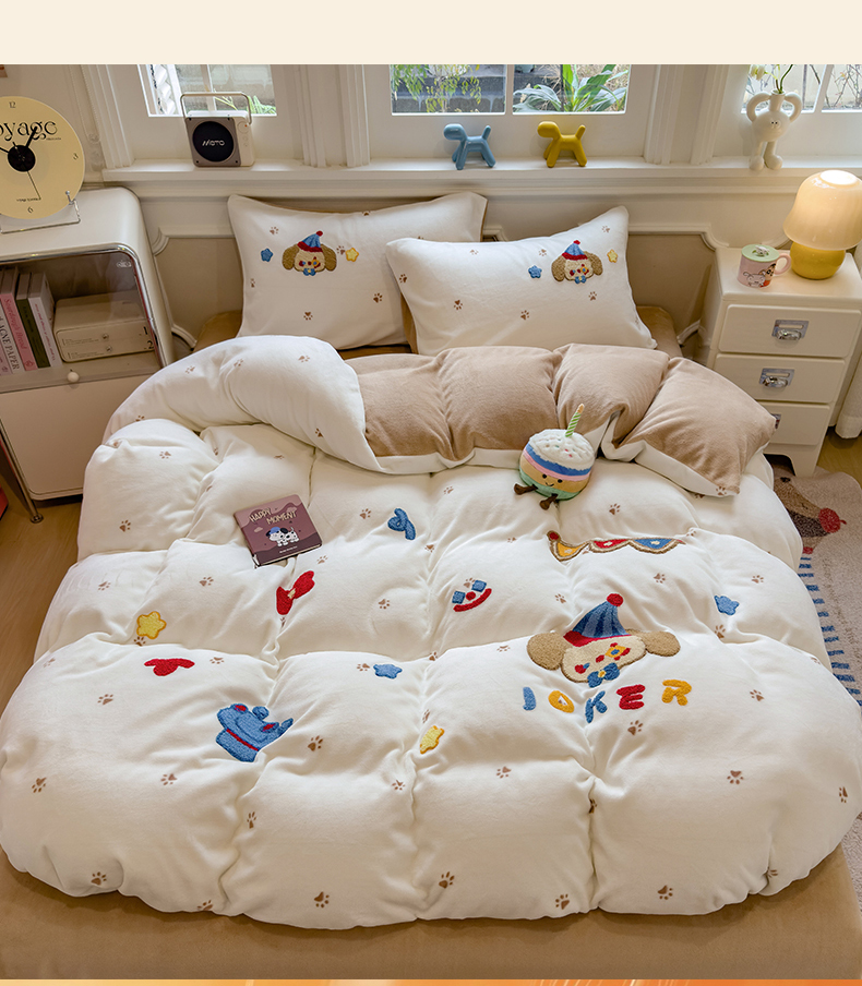 (总)兄弟坊 2025新款卡通消光牛奶绒贴布绣四件套,小狗梦乡,有趣动物园,猫咪乐园,熊熊乐园,萌犬乐园,宠物旅行,甜点旅行