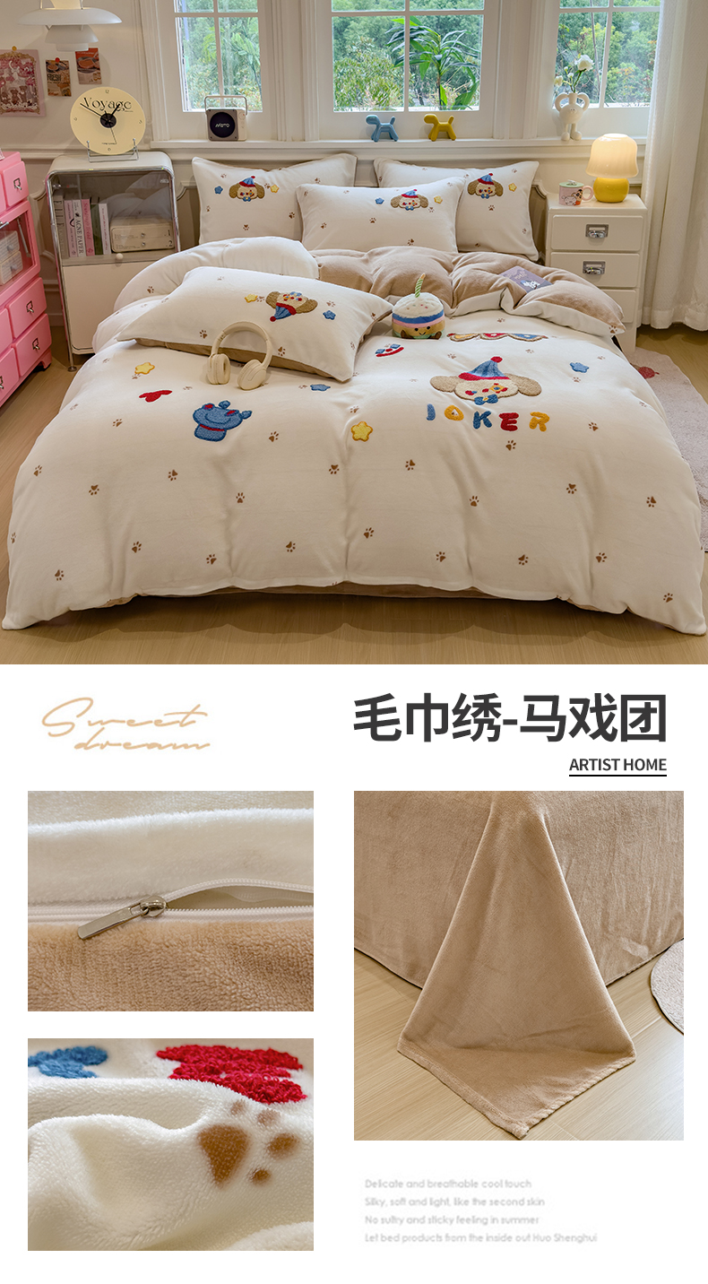 兄弟坊 2025新款A类牛奶绒印花毛巾绣四件套 毛巾绣-马戏团