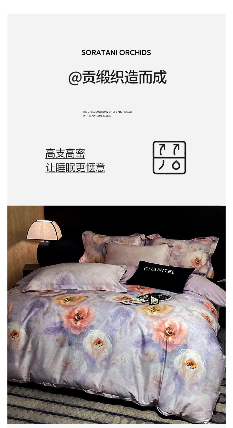 (总)大渔生活 2025新款贡缎长绒棉高品数码印花四件套,绯梦萦紫,花锦奢眠,花屿织叶,幻彩花眠,静若繁花,清梦花漪,清柔花镜,柔缎花眠,柔菌栀恋,雾粉花槿,怡梦花韵,云花漾蓝,紫绫花梦