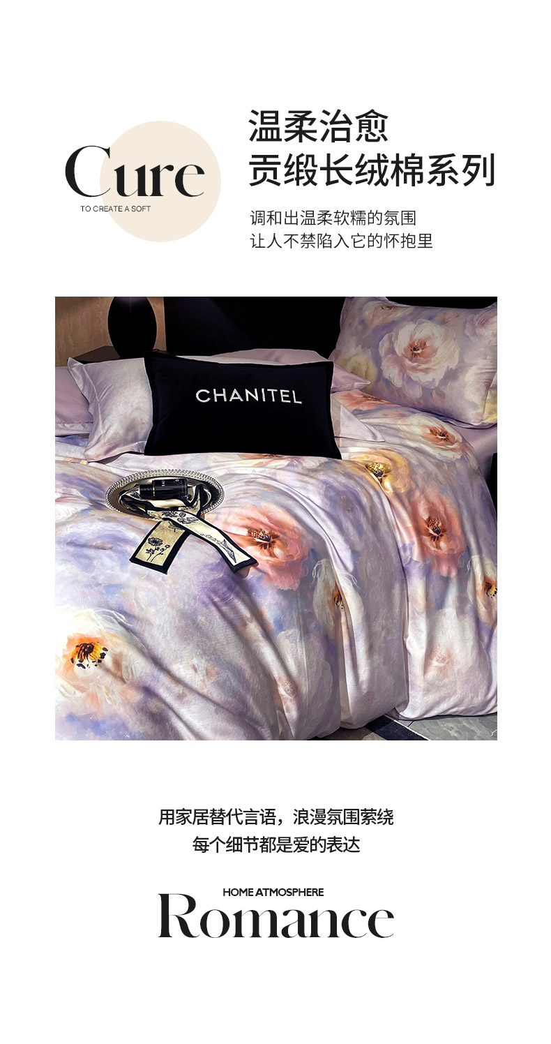 商品名称:大渔生活 2025新款贡缎长绒棉高品数码印花四件套 绯梦萦紫