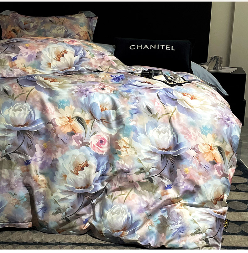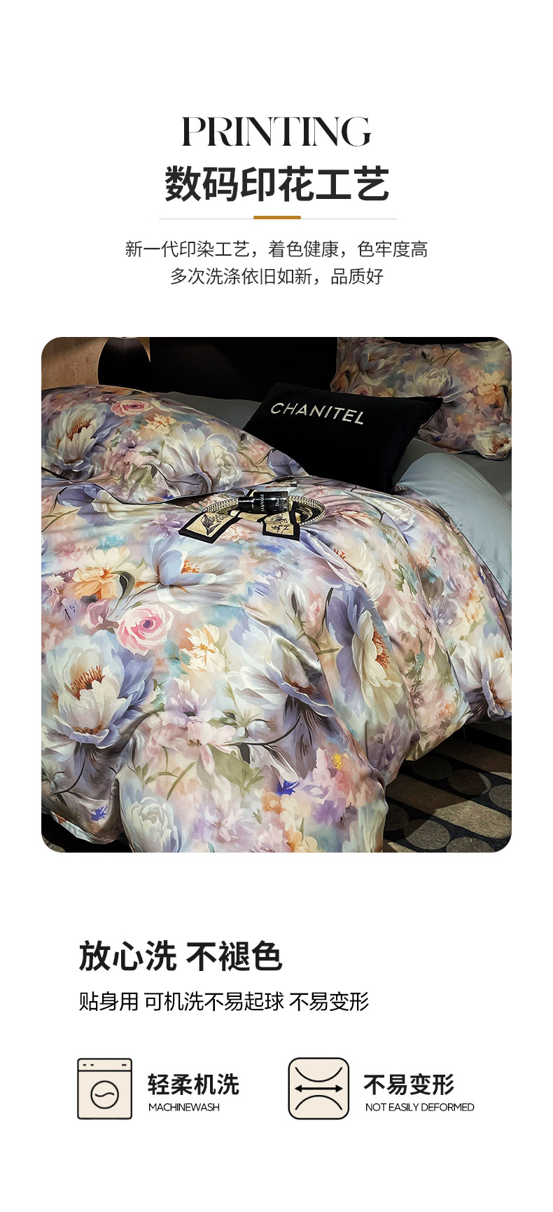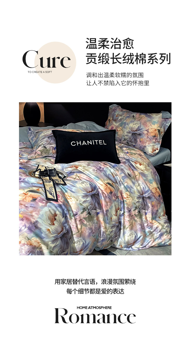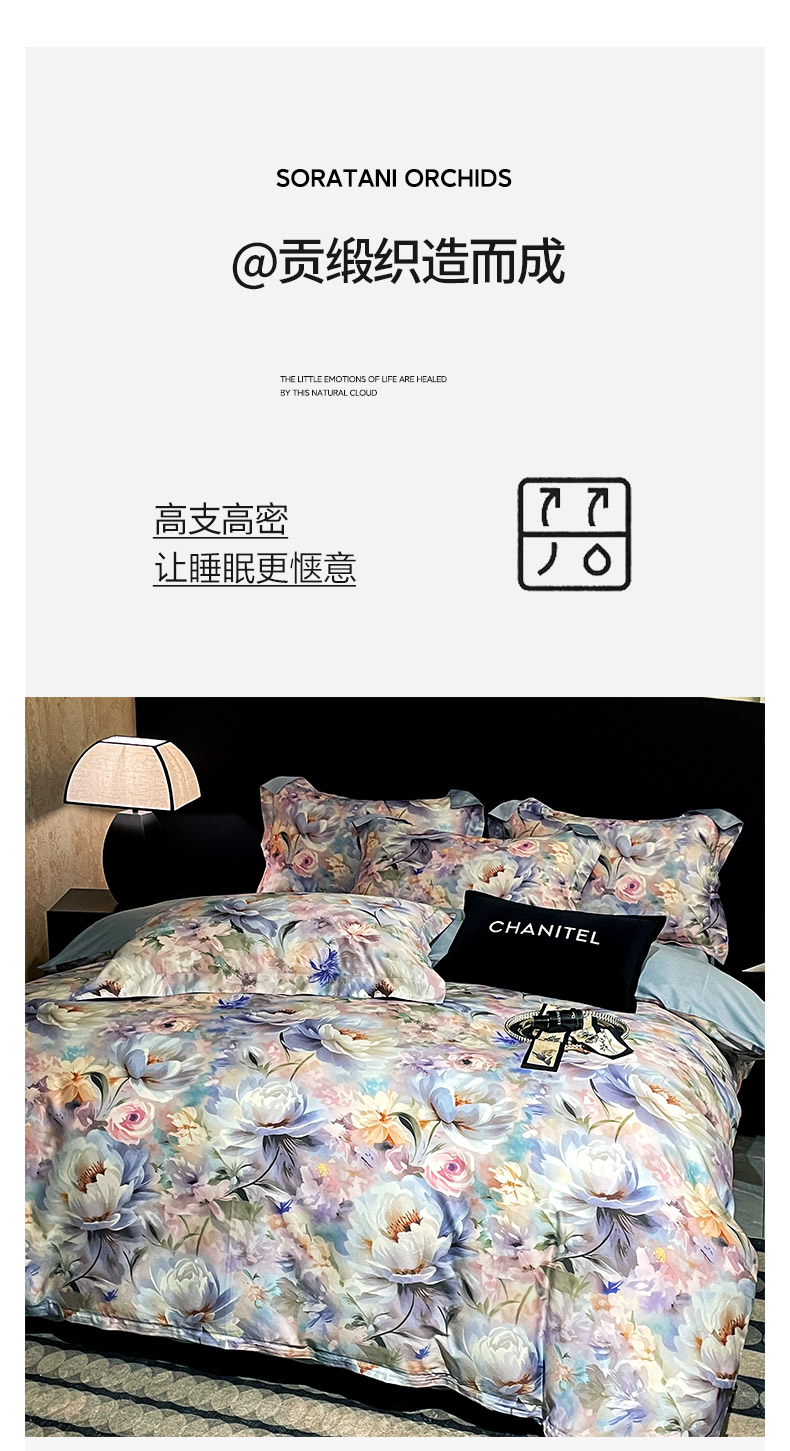 商品名称:大渔生活 2025新款贡缎长绒棉高品数码印花四件套 幻彩花眠