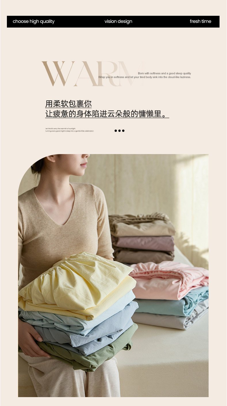(总)轩和家居 2025新款全棉高支旧感砂洗长绒棉单床笠,组合,薄樱粉,淡黄色,豆沙色,霁兰色,落栗棕,墨染灰,暮烟灰,浅云白,青绿色,秋麦色,松石绿,天空蓝,雾海蓝,细雨灰