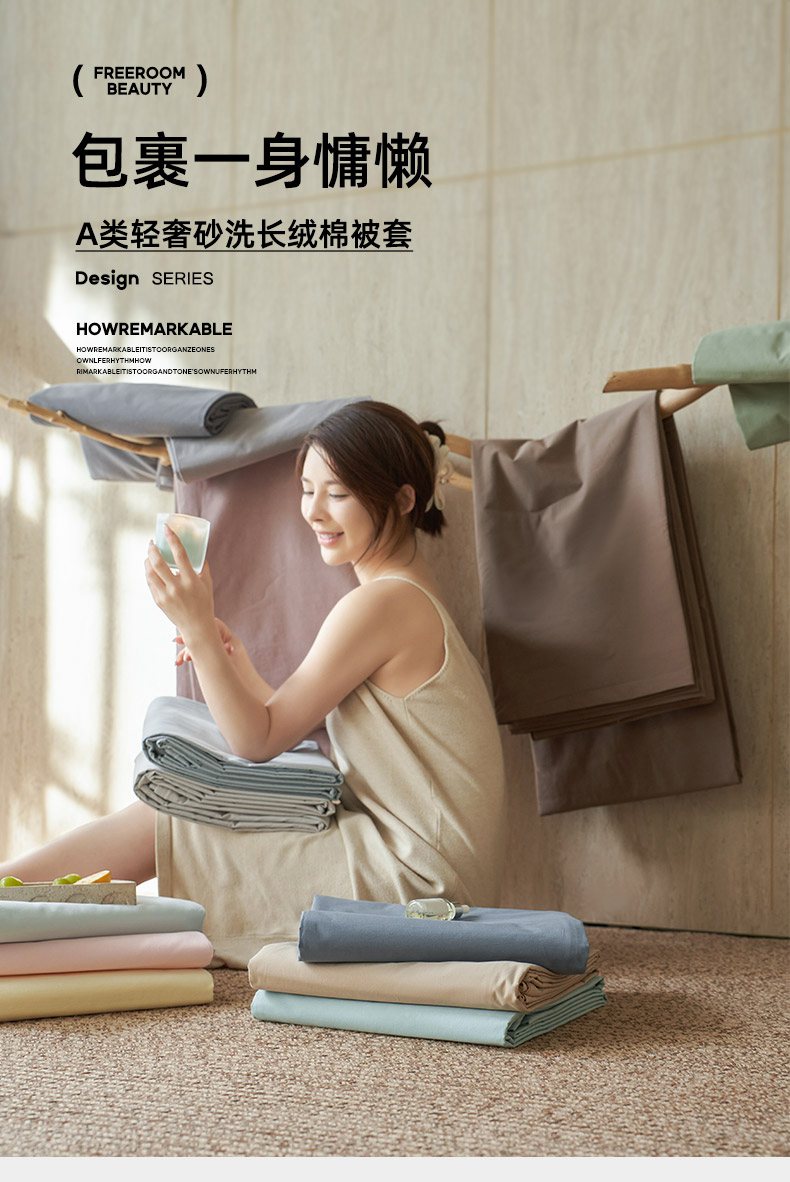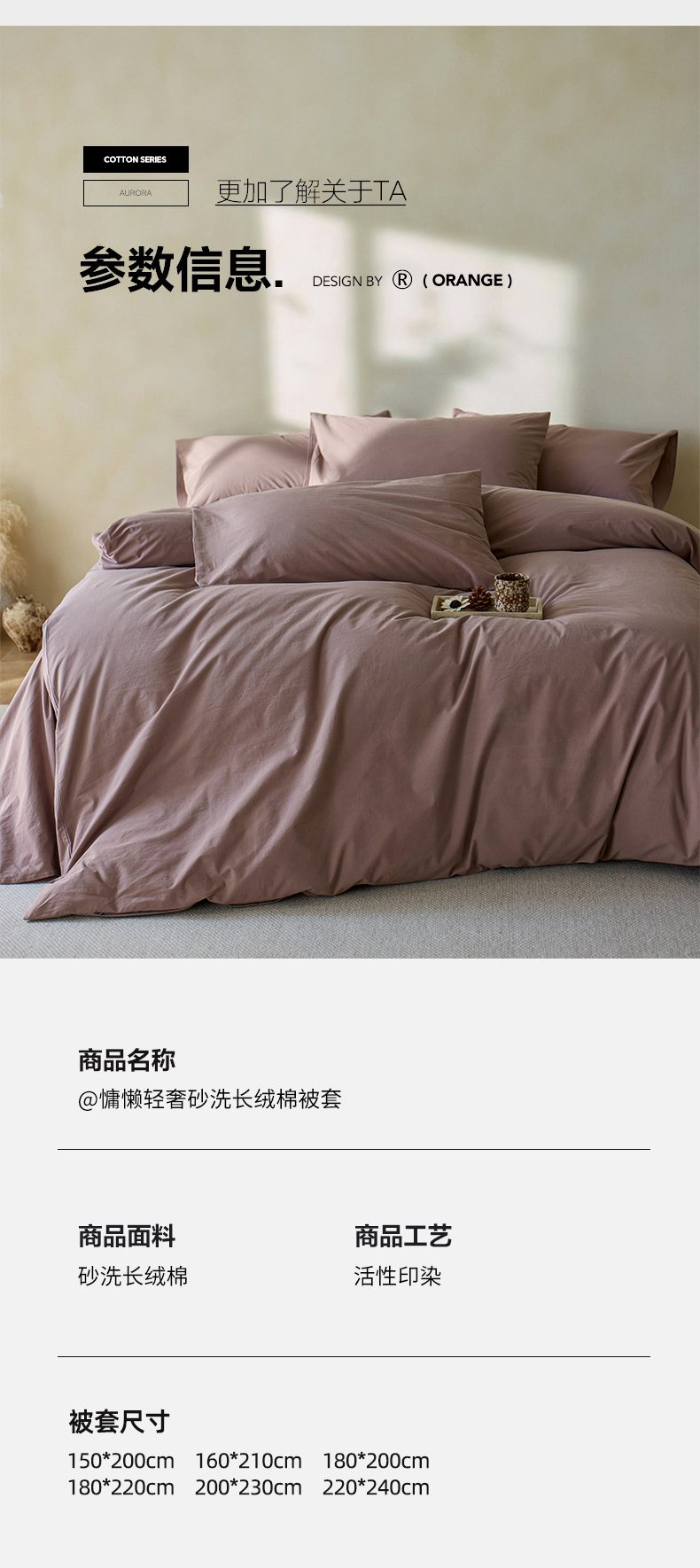 (总)轩和家居 2025新款全棉高支旧感砂洗长绒棉单被套,组合,薄樱粉,淡黄色,豆沙色,霁兰色,落栗棕,墨染灰,暮烟灰,浅云白,青绿色,秋麦色,松石绿,天空蓝,雾海蓝,细雨灰