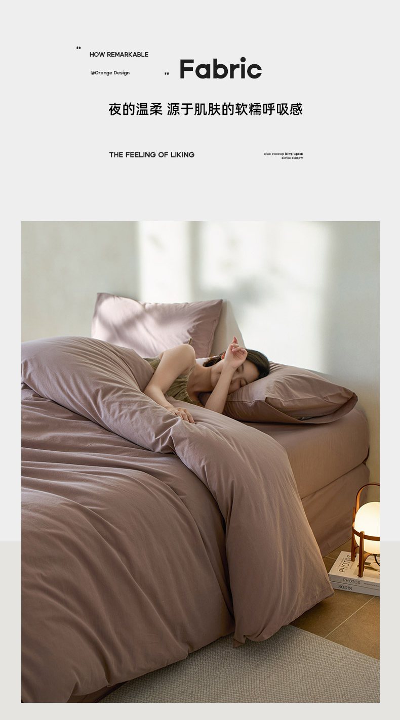 商品名称:轩和家居 2025新款全棉高支旧感砂洗长绒棉单被套 豆沙色