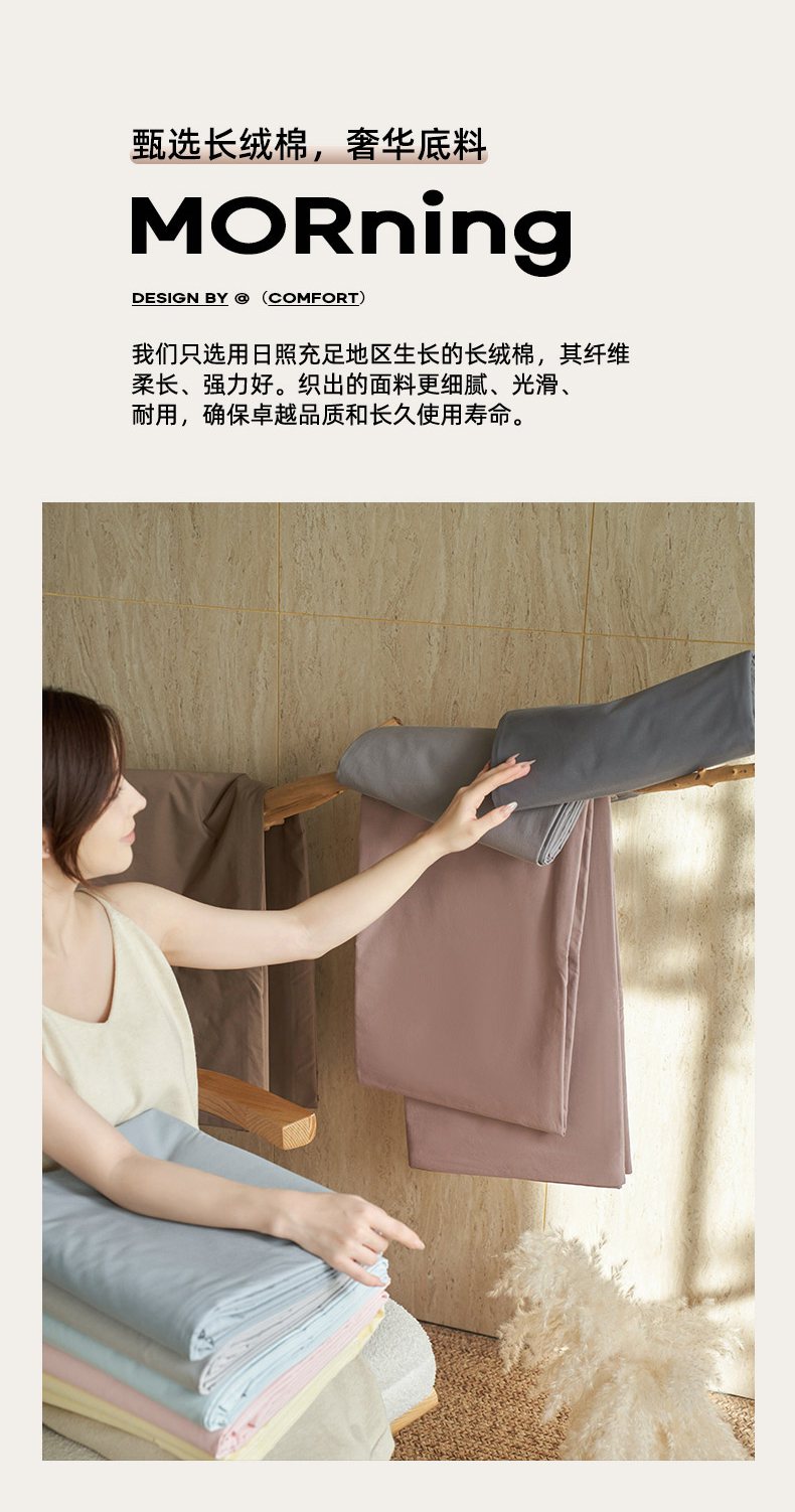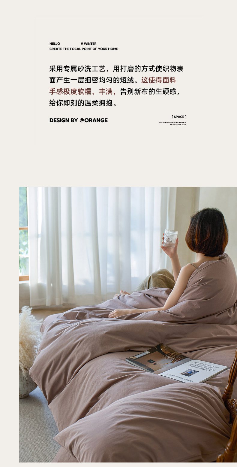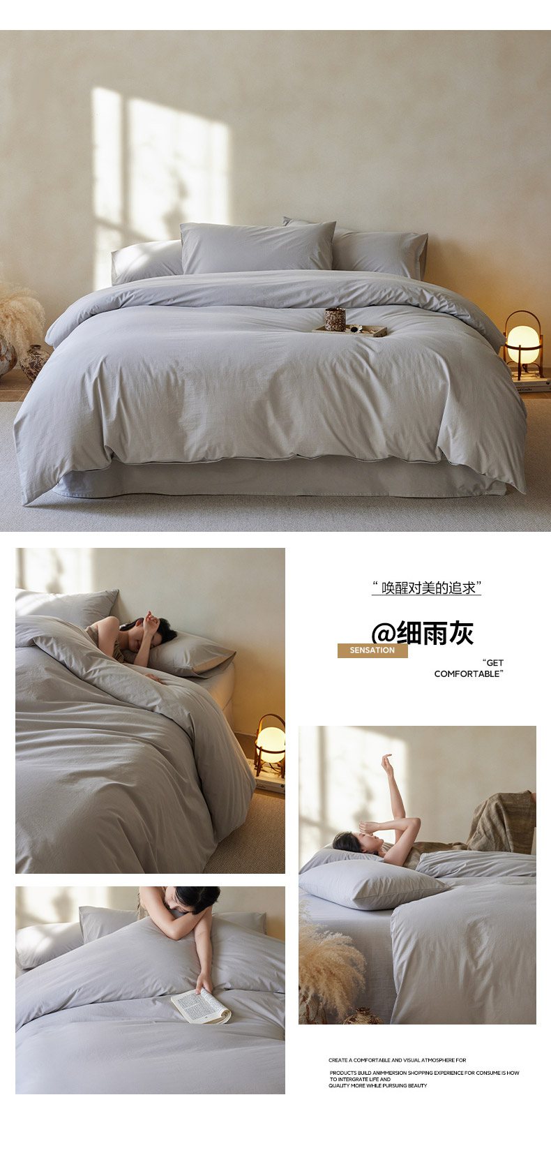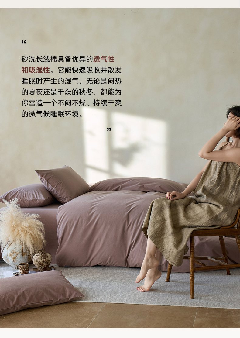 (总)轩和家居 2025新款全棉高支旧感砂洗长绒棉四件套,薄樱粉,淡黄色,暮烟灰,墨染灰,落栗棕,霁兰色,豆沙色,浅云白,青绿色,秋麦色,松石绿,天空蓝,雾海蓝,细雨灰