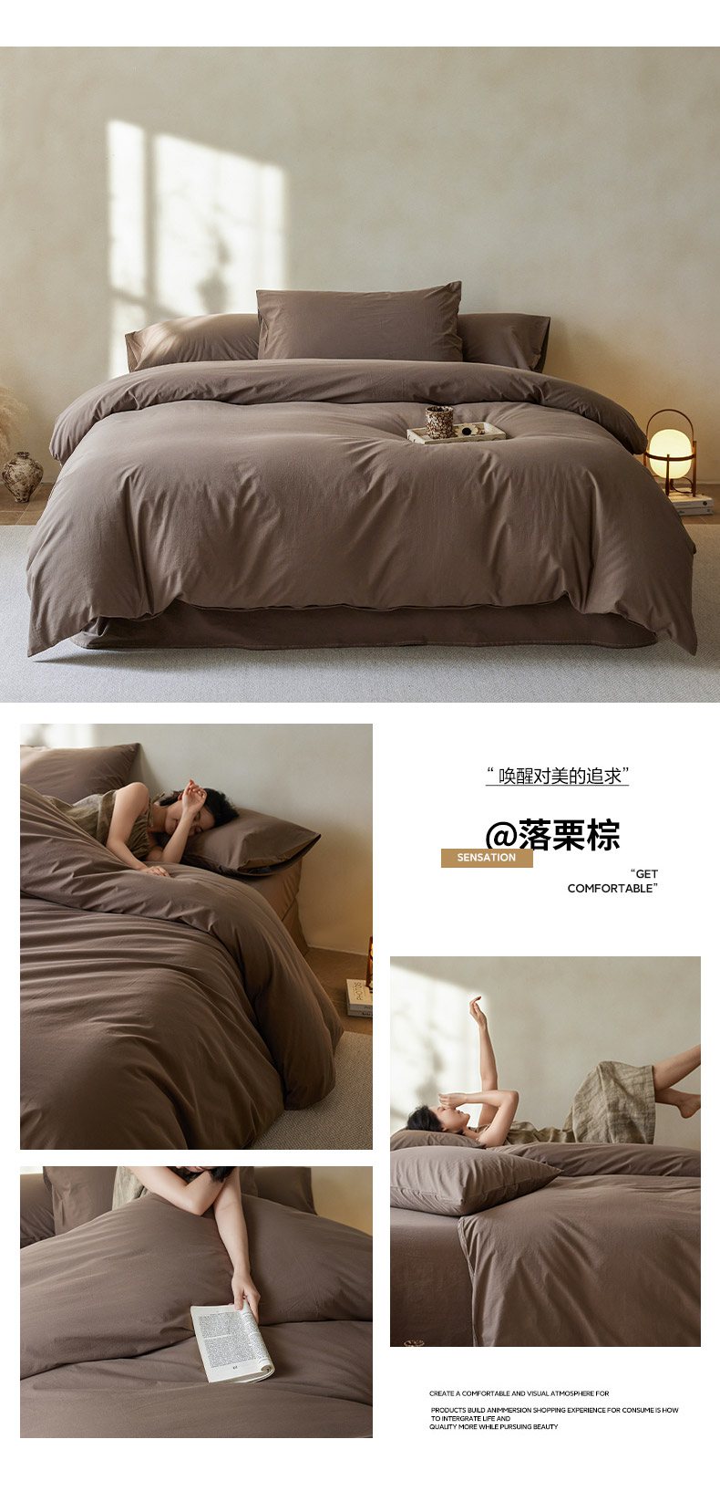 (总)轩和家居 2025新款全棉高支旧感砂洗长绒棉四件套,薄樱粉,淡黄色,暮烟灰,墨染灰,落栗棕,霁兰色,豆沙色,浅云白,青绿色,秋麦色,松石绿,天空蓝,雾海蓝,细雨灰