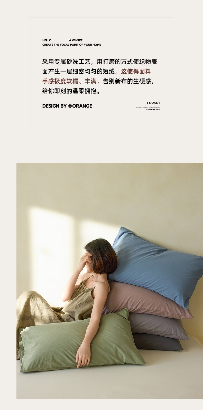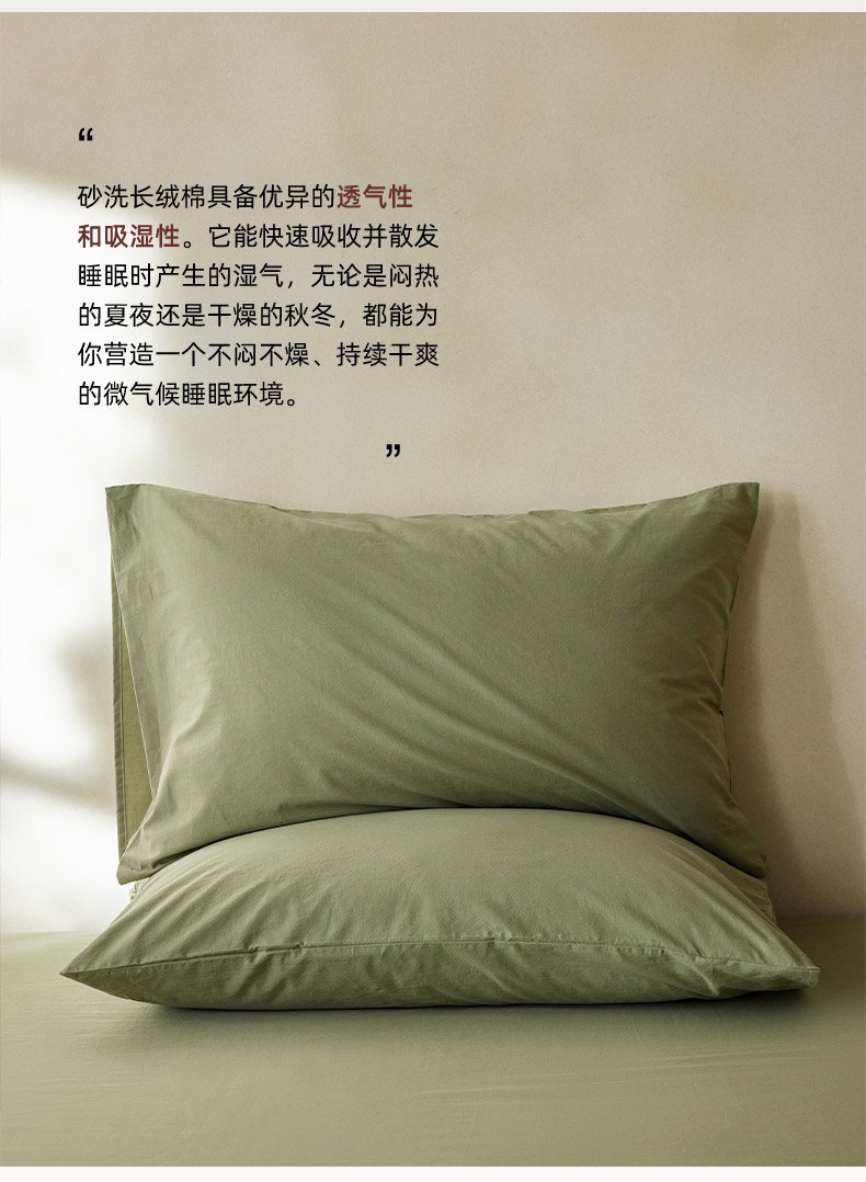 (总)轩和家居 2025新款全棉高支旧感砂洗长绒棉单枕套,组合,薄樱粉,淡黄色,豆沙色,霁兰色,落栗棕,墨染灰,暮烟灰,浅云白,青绿色,秋麦色,松石绿,天空蓝,雾海蓝,细雨灰