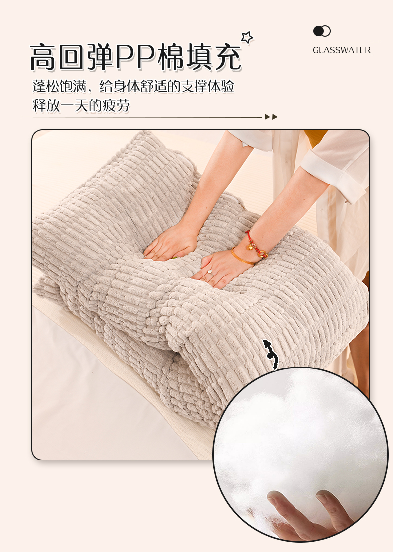 (总)碧尔家居 2025新款简约猫长条机械钉扣水洗棉床头靠枕,米黄,浅蓝,银灰