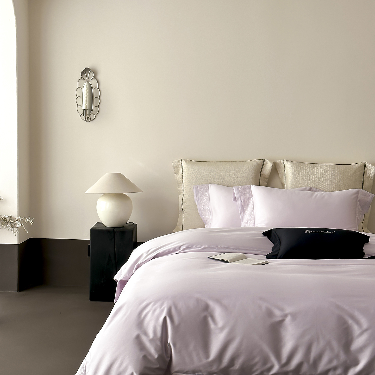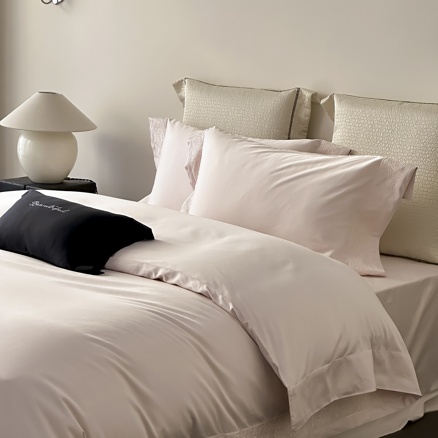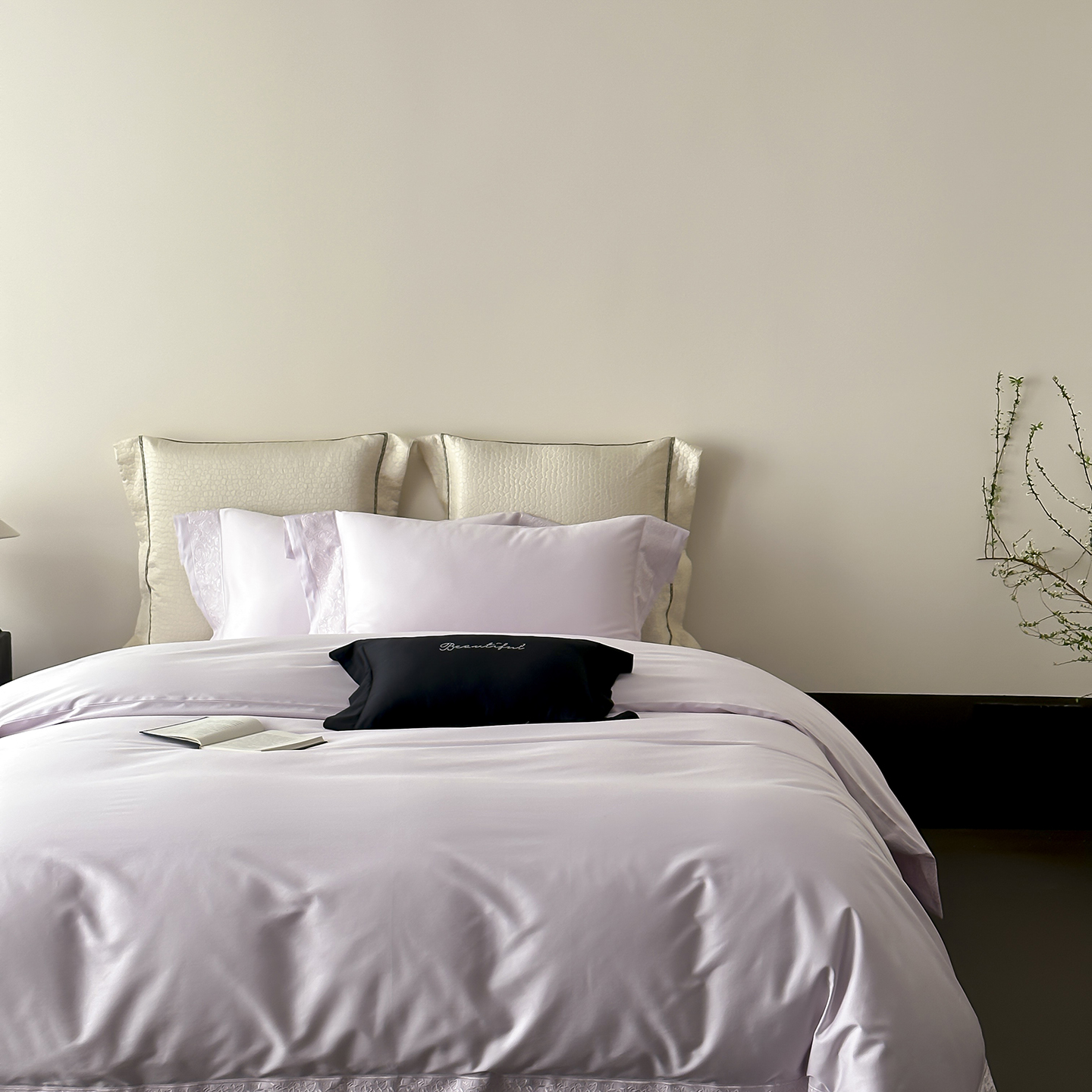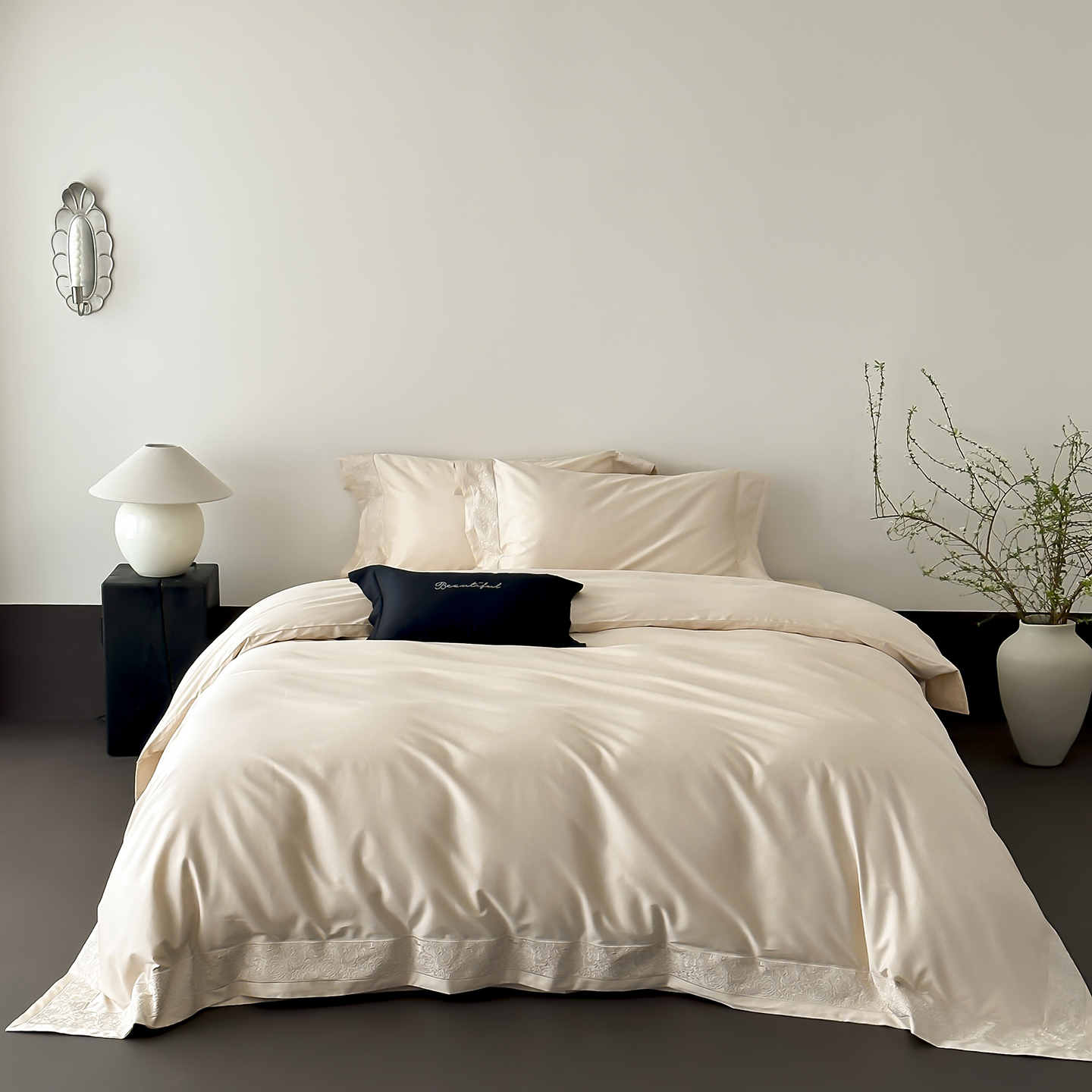 佳汐蓝家纺 2025新款全棉刺绣花边四件套-妮娅 妮娅-香槟色