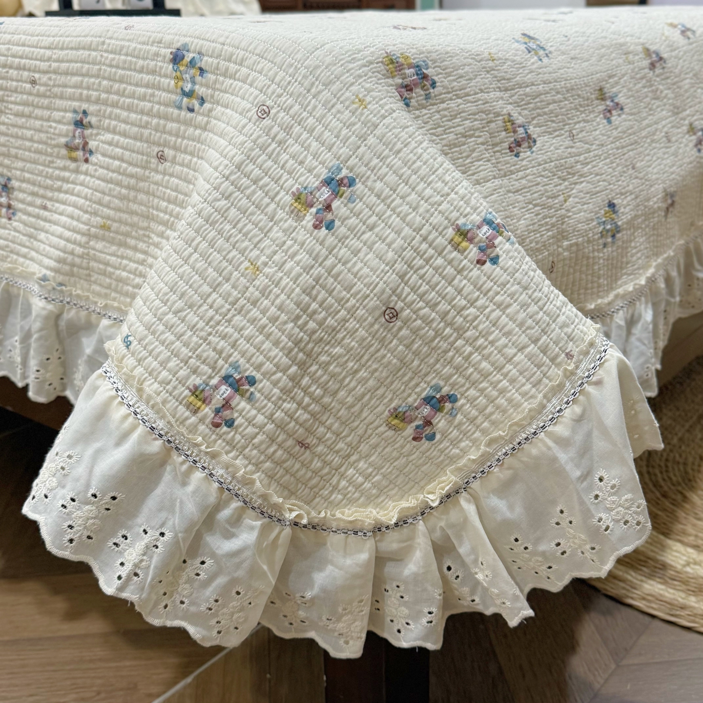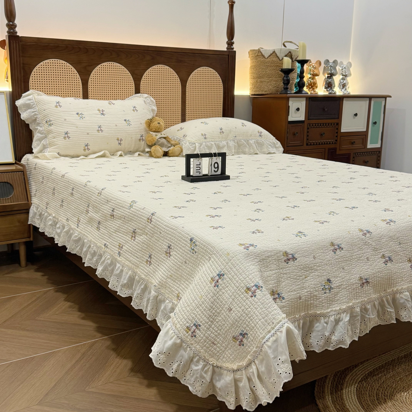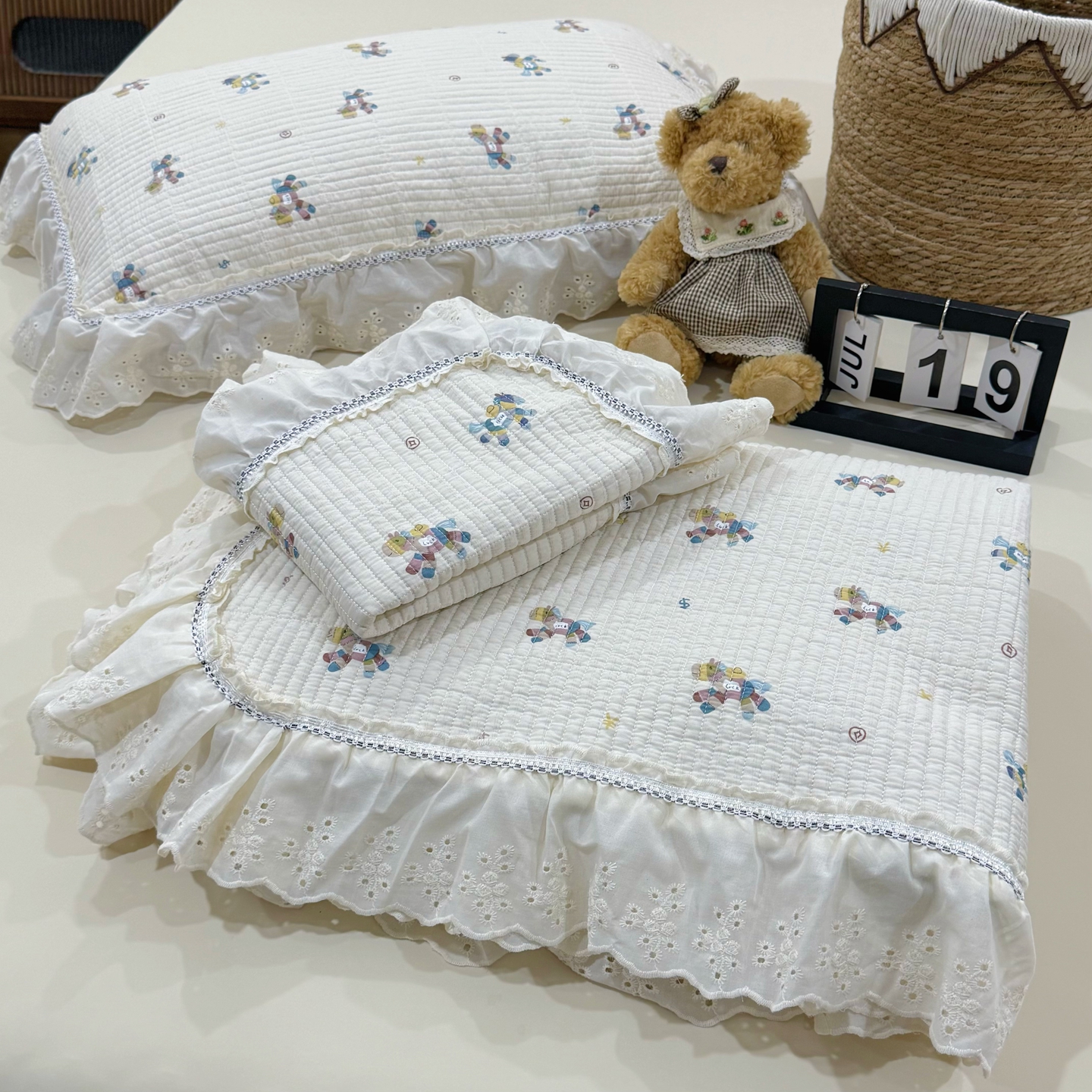 床盖工厂店 2025新款法式双面全面填充棉花床盖三件套 小马浅浅