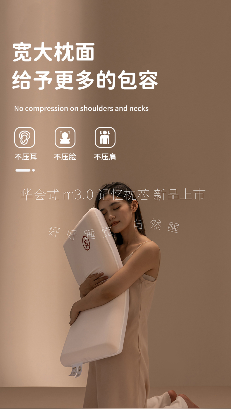 商品名称:蝶飞舞 2025新款(源头工厂)华会式M3.0记忆枕全季酒店枕零压力慢回弹深睡护颈椎枕 纸盒