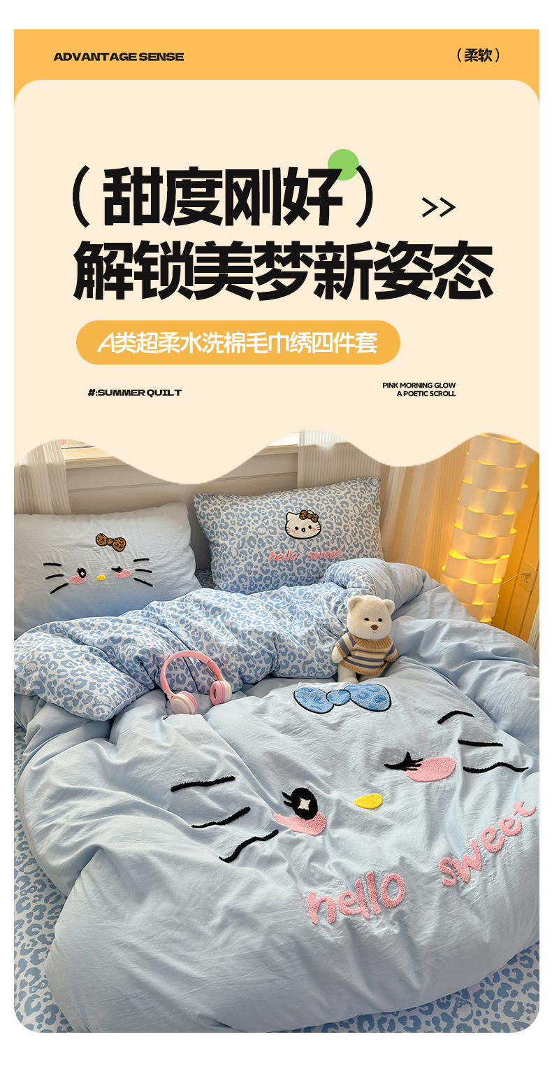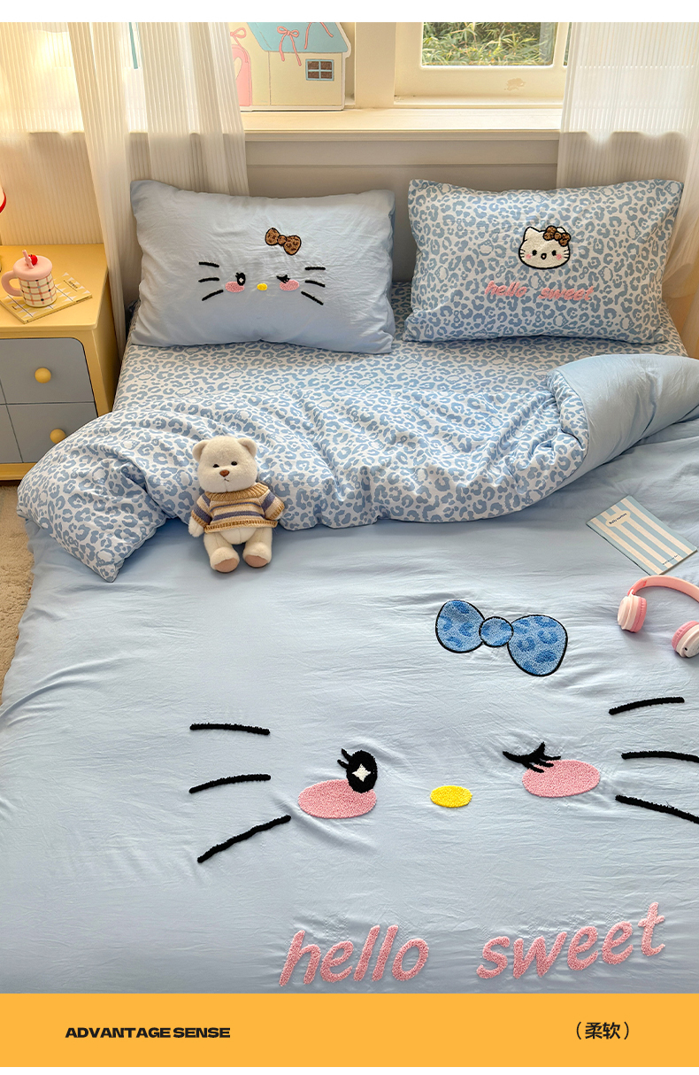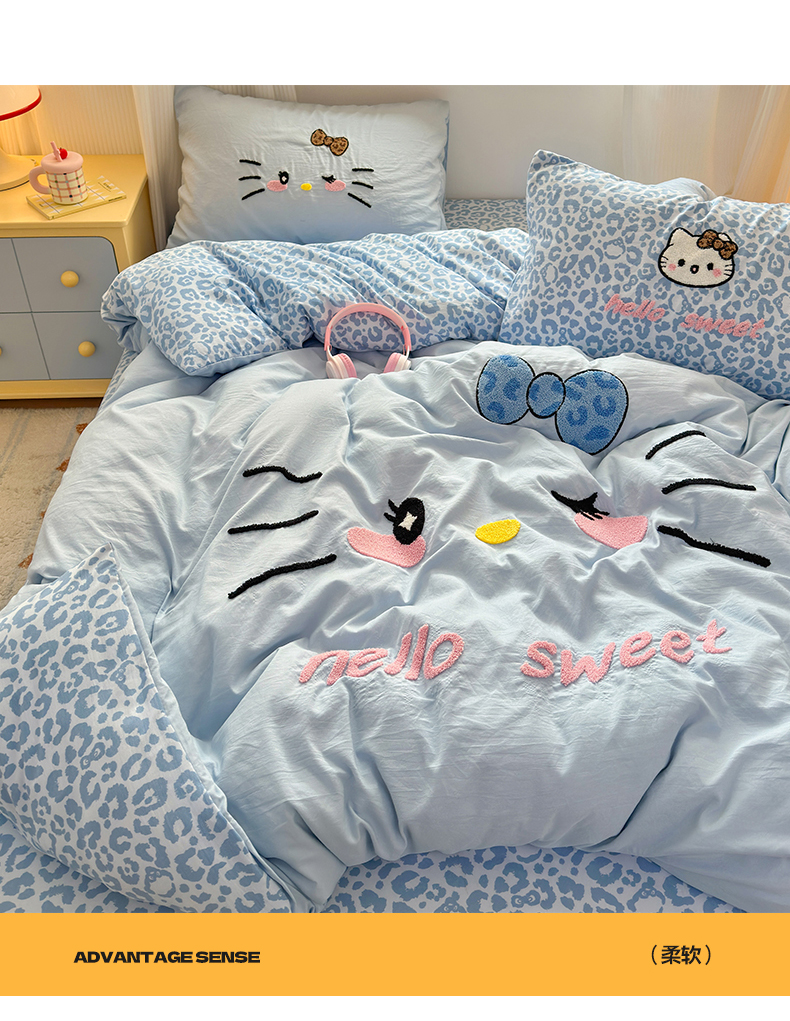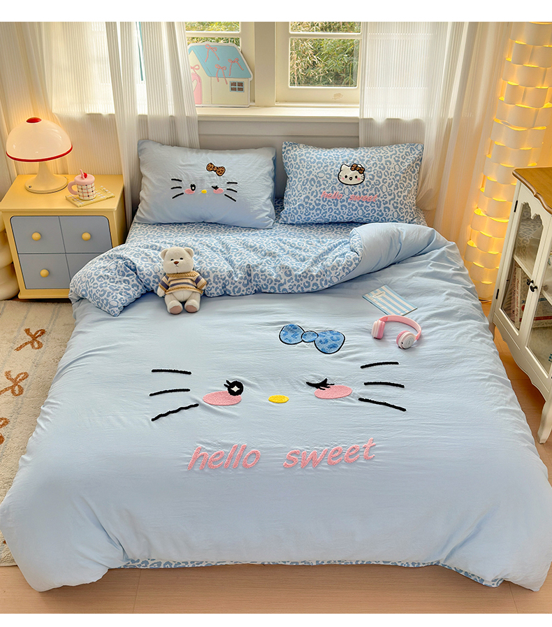 当前位置: 91家纺网 > 商品网购 > 床品套件 > 四件套 > 水洗棉四件套 > 奈颜 2026新款A类水洗棉大版毛巾绣豹纹小猫四件套--影棚图 豹纹小猫-浅蓝