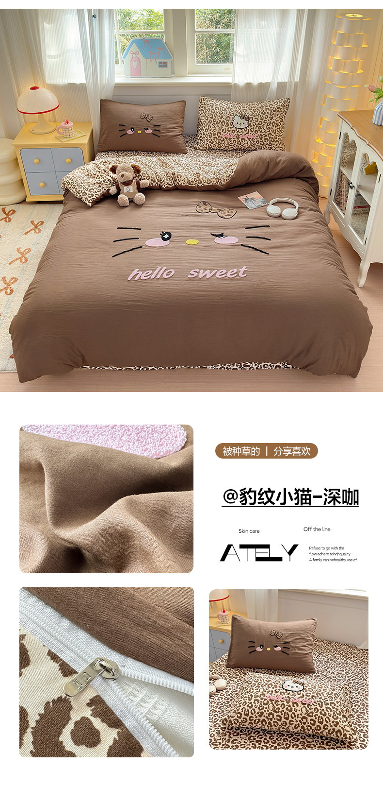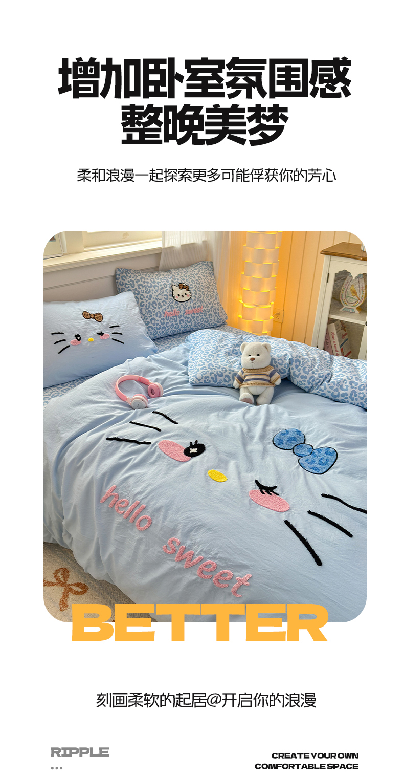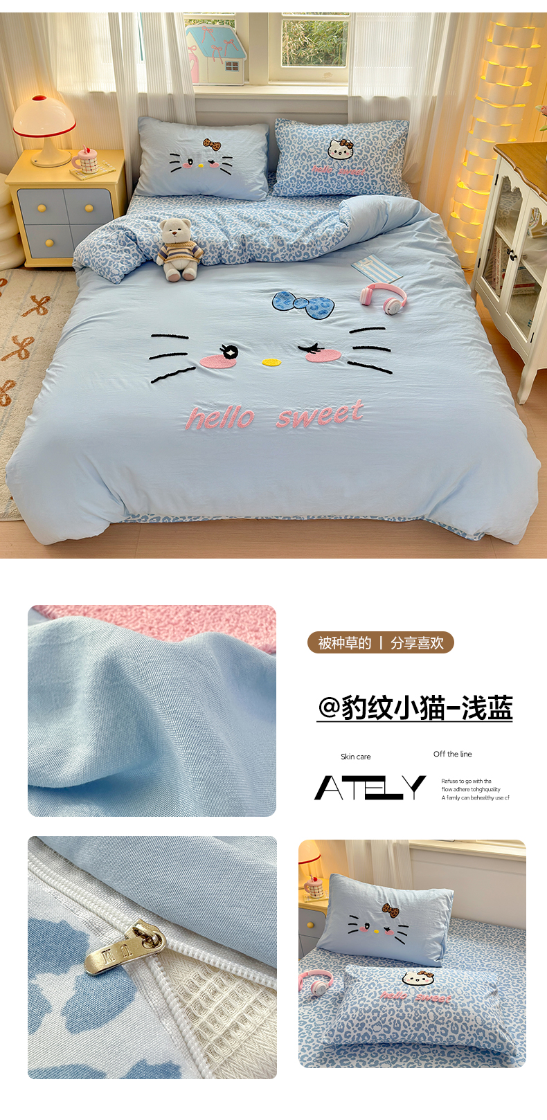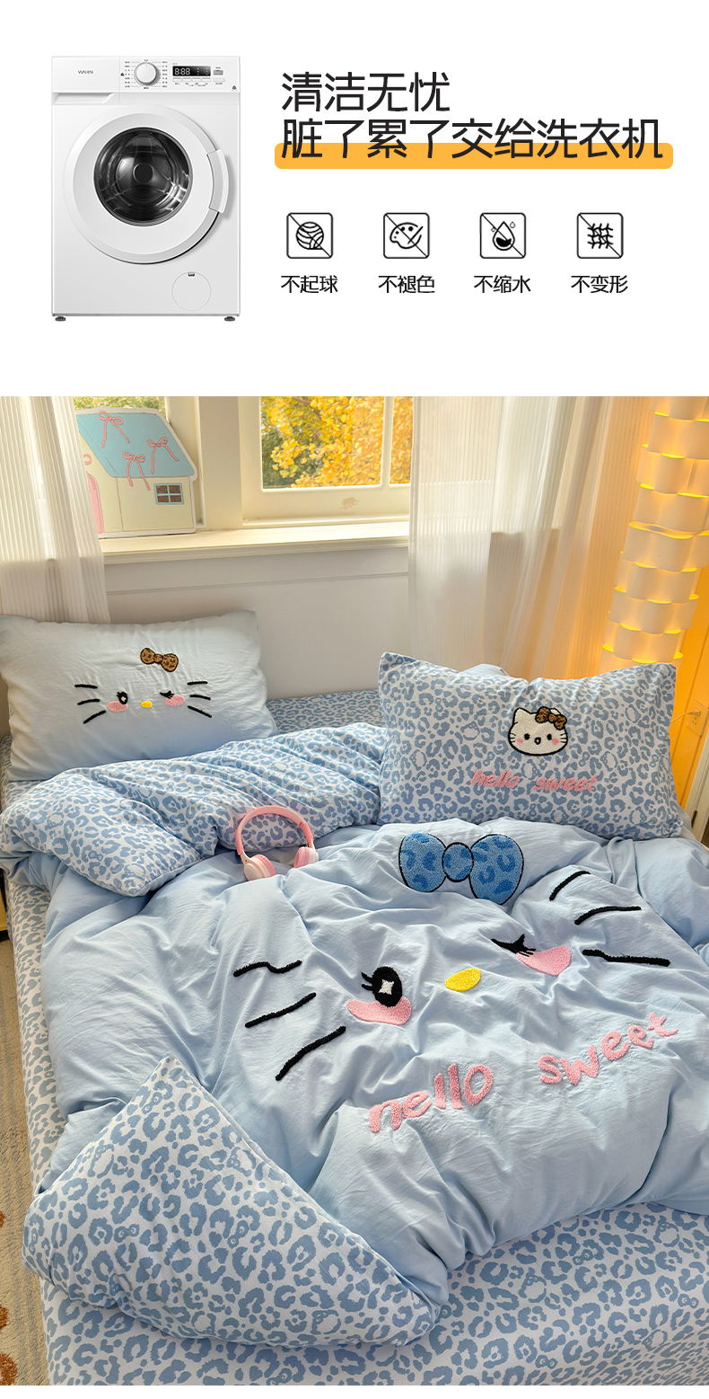 当前位置: 91家纺网 > 商品网购 > 床品套件 > 四件套 > 水洗棉四件套 > 奈颜 2026新款A类水洗棉大版毛巾绣豹纹小猫四件套--影棚图 豹纹小猫-浅蓝