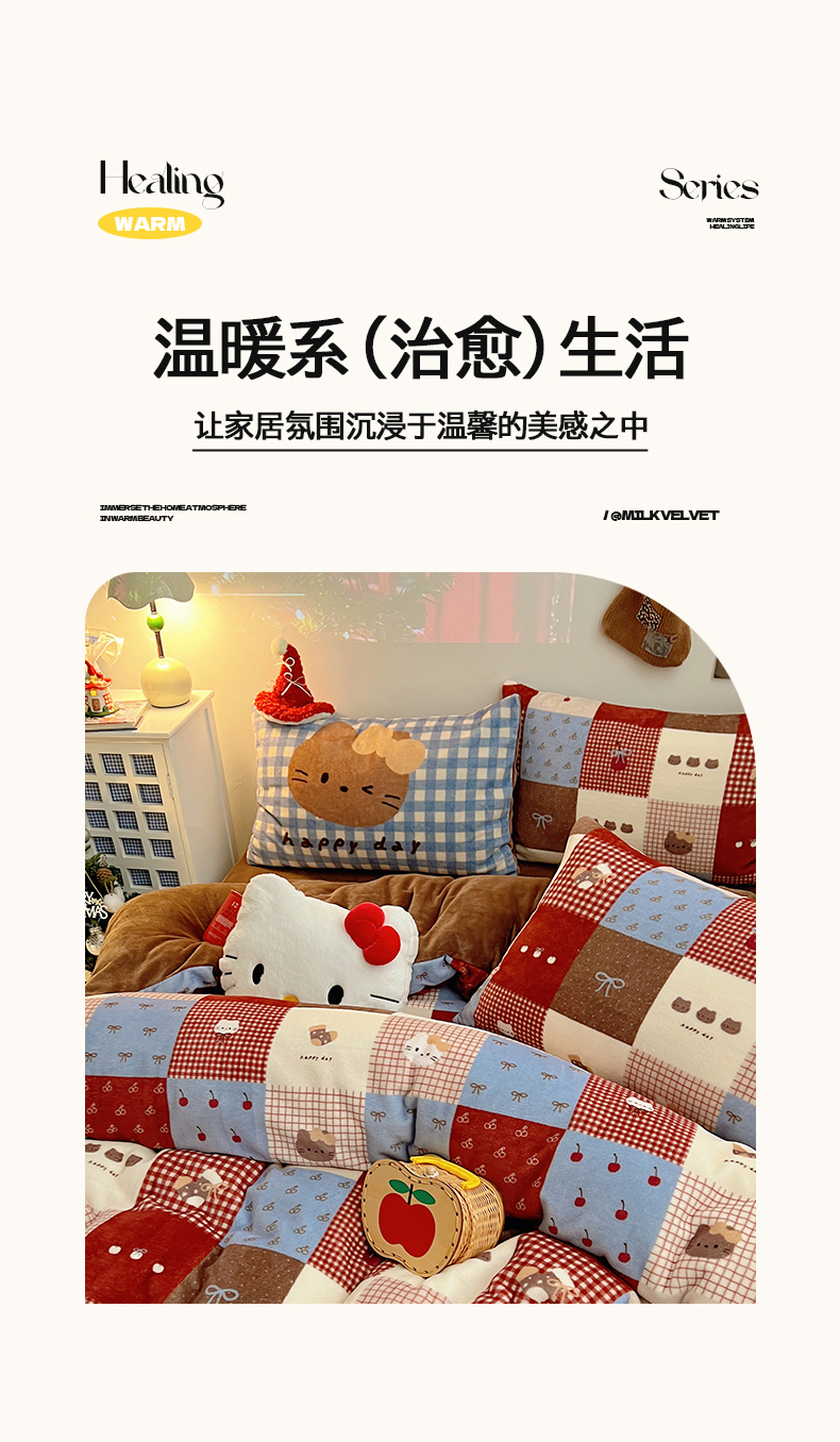 (总)桃子家居 2026新款A类数码印花混搭冬季新年限定猫咪小马加厚牛奶绒四件套,绒-粉色费尔岛小狗,绒-梦幻小马粉,绒-梦幻小马蓝红,绒-樱桃猫猫红,绒-樱桃猫猫咖,绒-棕糖木马