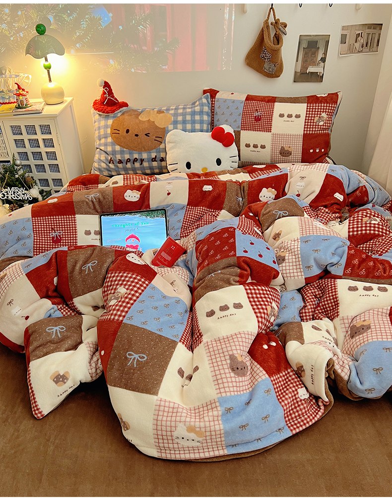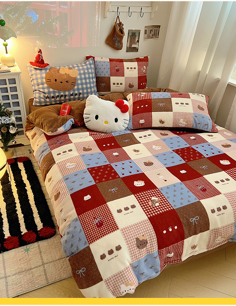 (总)桃子家居 2025新款A类毛巾绣立体数码印花可爱卡通圣诞印加绣加厚牛奶绒系列四件套,绒印加绣-安哥拉红条猫咪,绒印加绣-粉粉腊肠小狗,绒印加绣-福运猫咪,绒印加绣-咖咖圣诞小熊,绒印加绣-奶黄条纹雪人,绒印加绣-奶油欢乐狗,绒印加绣-条纹圣诞快乐