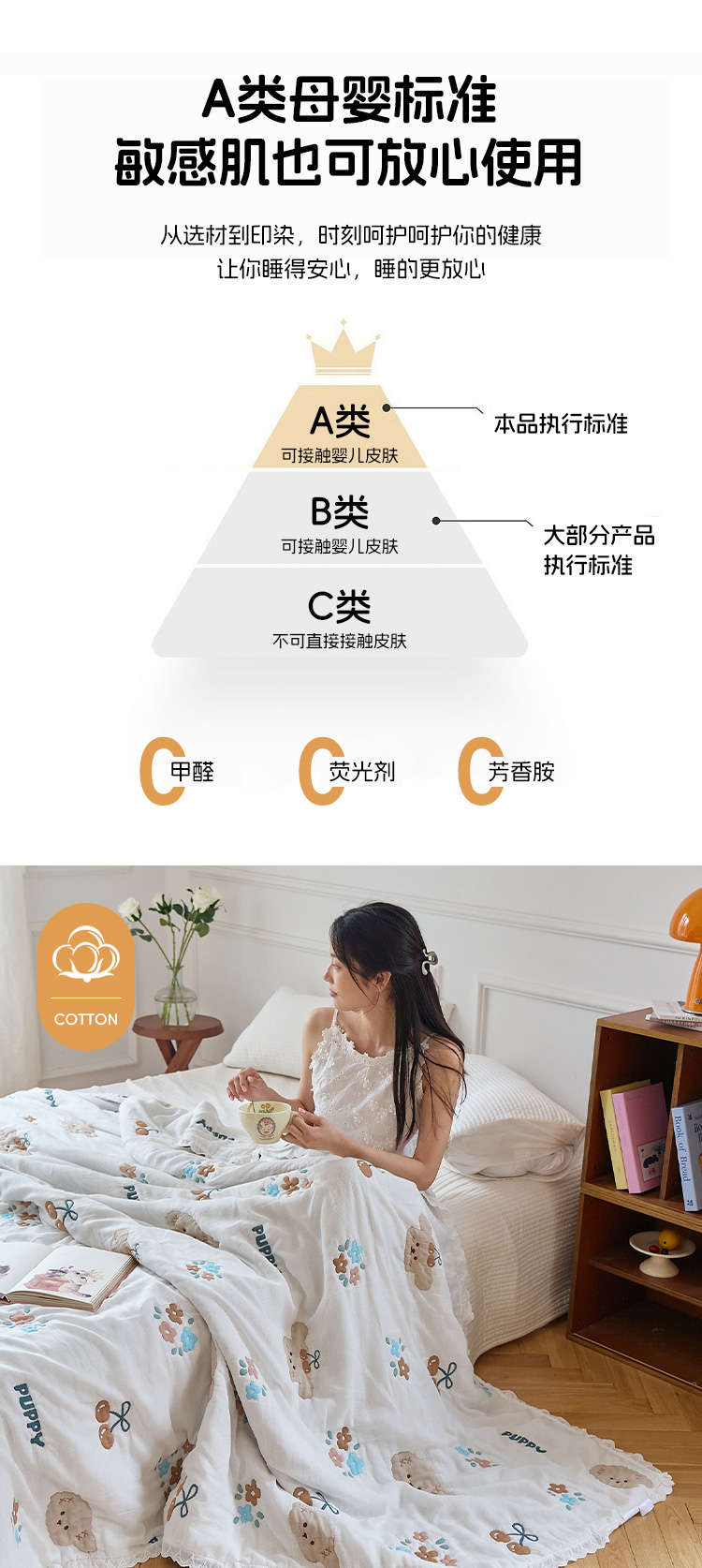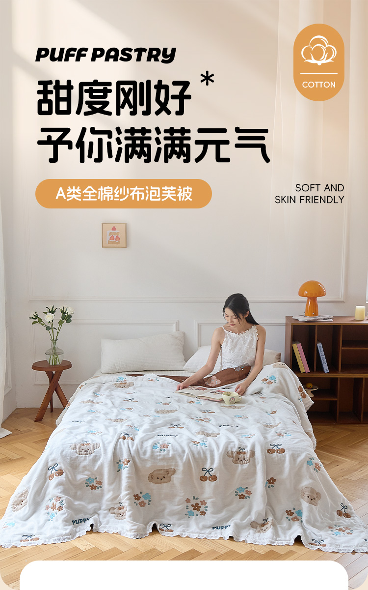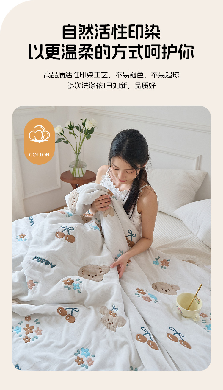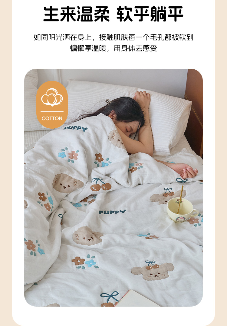 商品名称:沐瑟家纺 2026新款A类全棉纱布泡芙被春秋被被被子被芯 樱桃狗