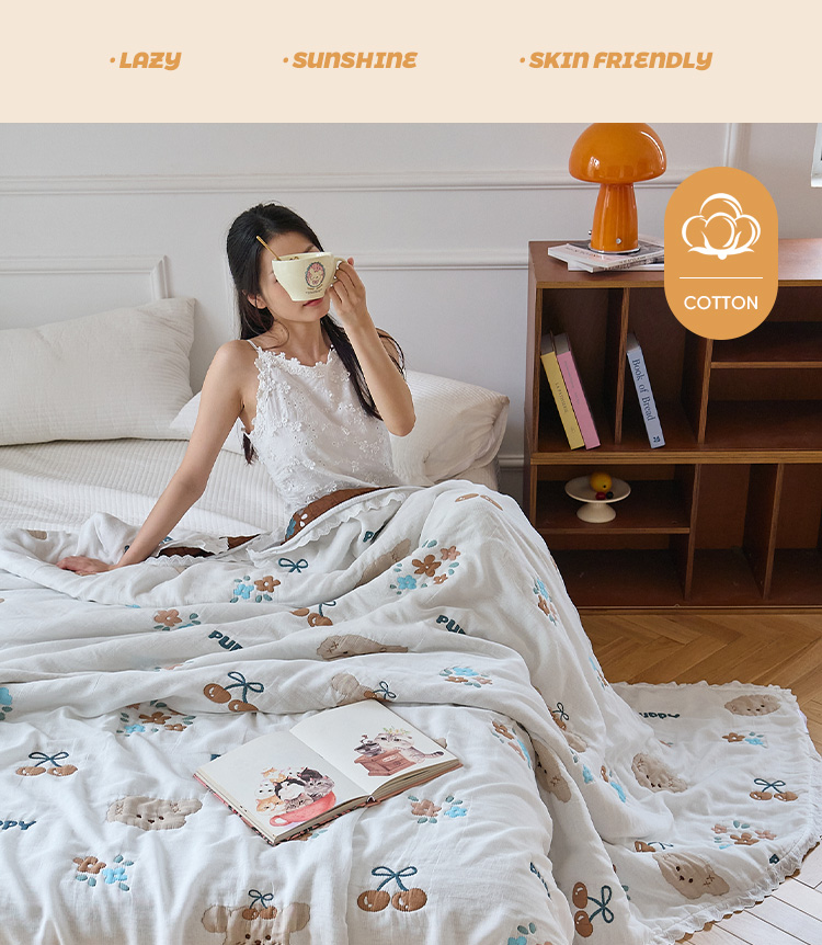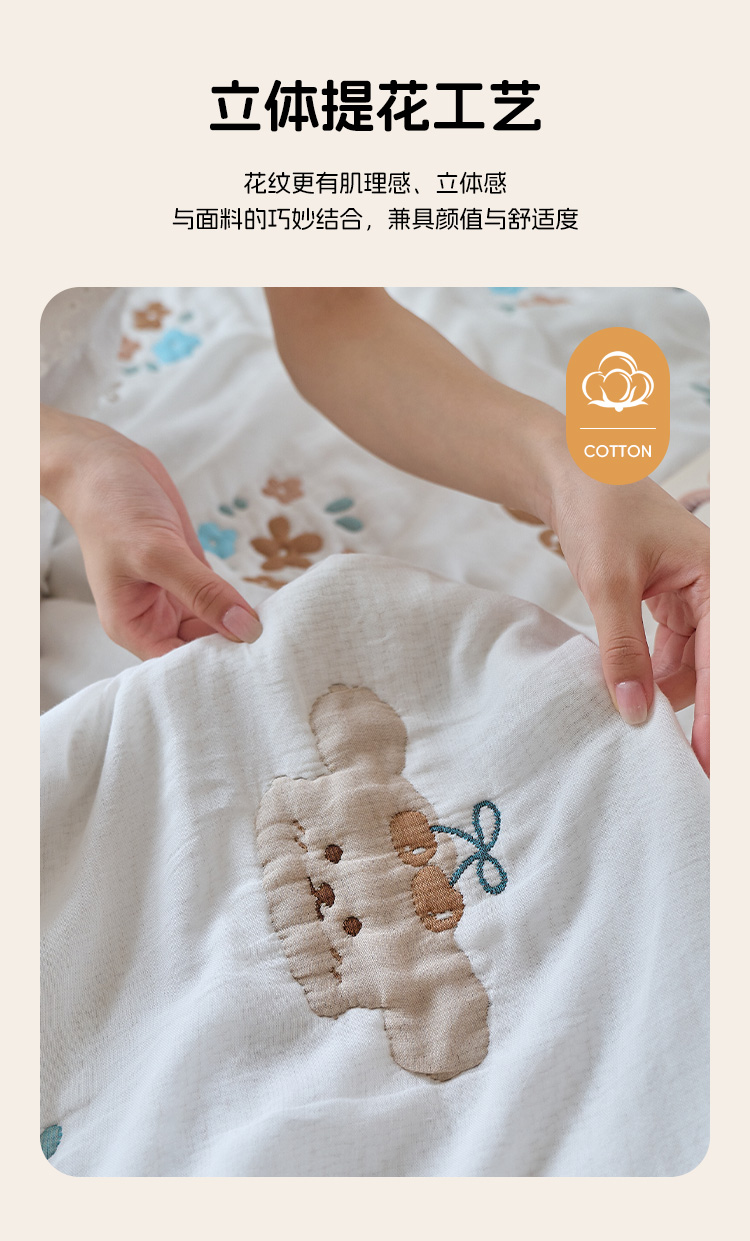 (总)沐瑟家纺 2026新款A类全棉纱布泡芙被夏被被子被芯,黄色小熊,玩偶猫,组合图