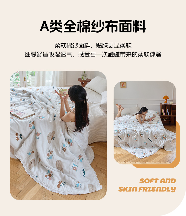 沐瑟家纺 2026新款A类全棉纱布泡芙被春秋被被被子被芯 樱桃狗