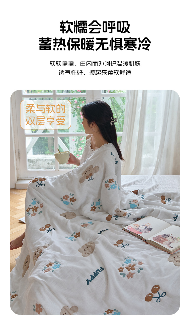 (总)沐瑟家纺 2025新款亲肤柔软全棉纱布中国风盖毯毯子,百花集,翠影鸟-蓝色,花想容,花鸟韵,蝶语-绿,蝶语-淡粉,花蝶-米,比翼鸟,墨葵,绮梦花
