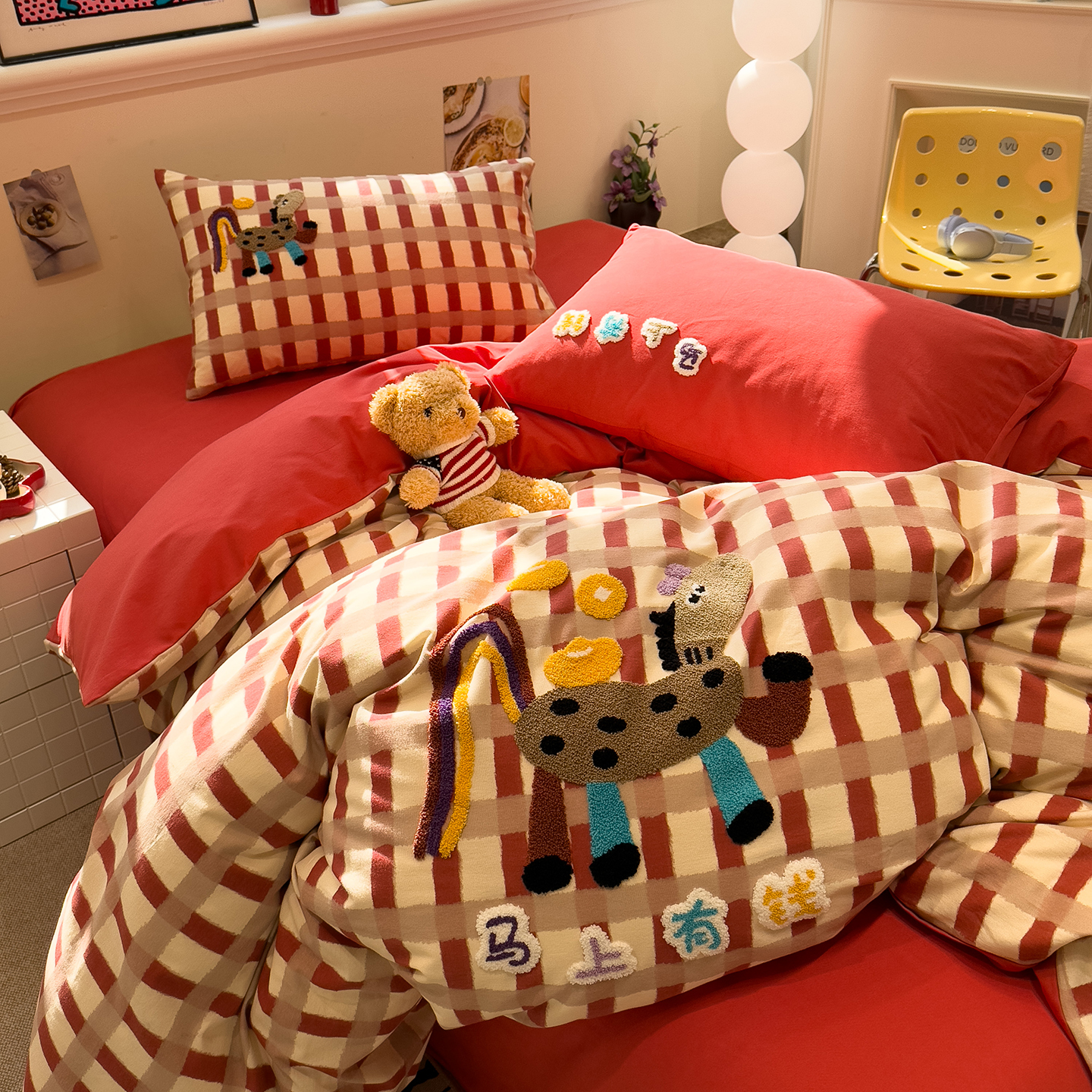 当前位置: 91家纺网 > 商品网购 > 床品套件 > 四件套 > 普通磨毛四件套 > 珺柔家纺 2026新款马年全棉纯棉磨毛新春款四件套 HORSE发生