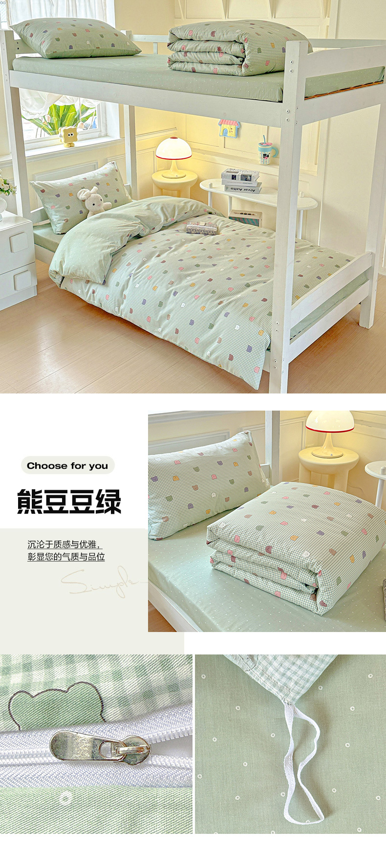 (总)小豚鼠 2025纯棉13372学生三件套全棉宿舍六件套(收纳袋)(顺丰代发),草莓兔,方格蓝,军训绿,马德里-灰,马德里-蓝,努力小狗,熊豆豆-粉,熊豆豆-绿,收纳袋