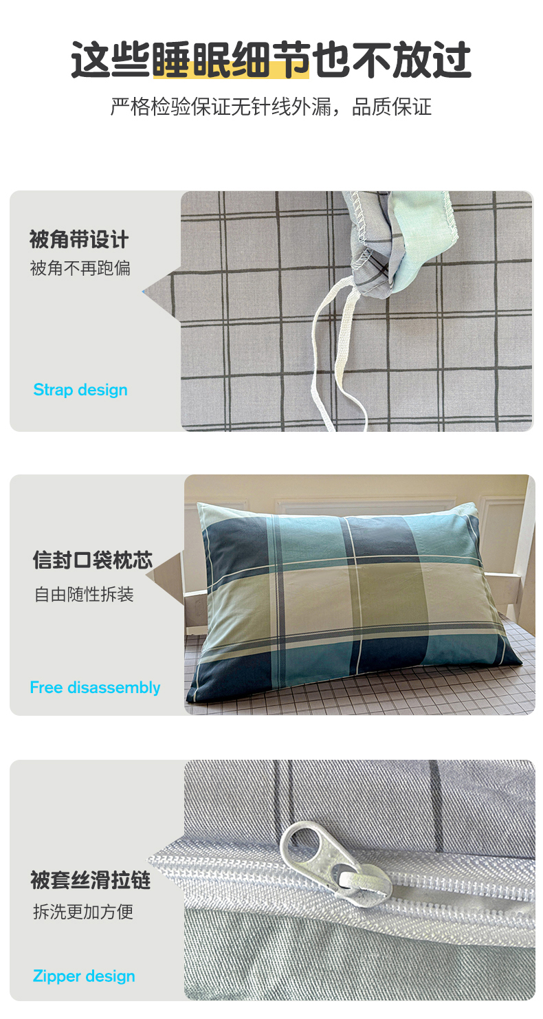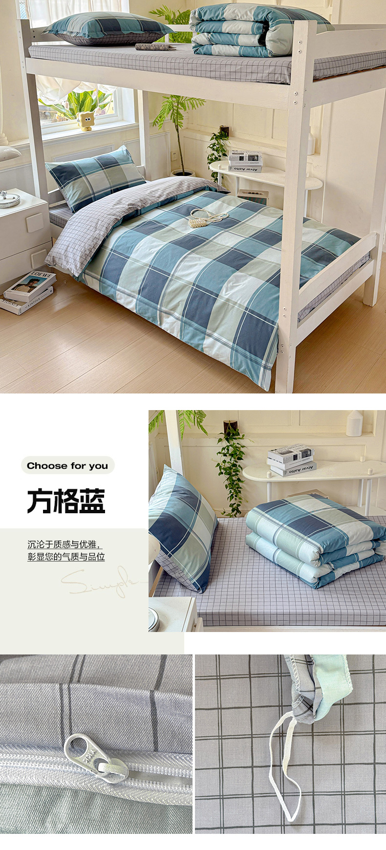 小豚鼠 2025纯棉13372学生三件套全棉宿舍六件套(收纳袋)(顺丰代发) 方格蓝