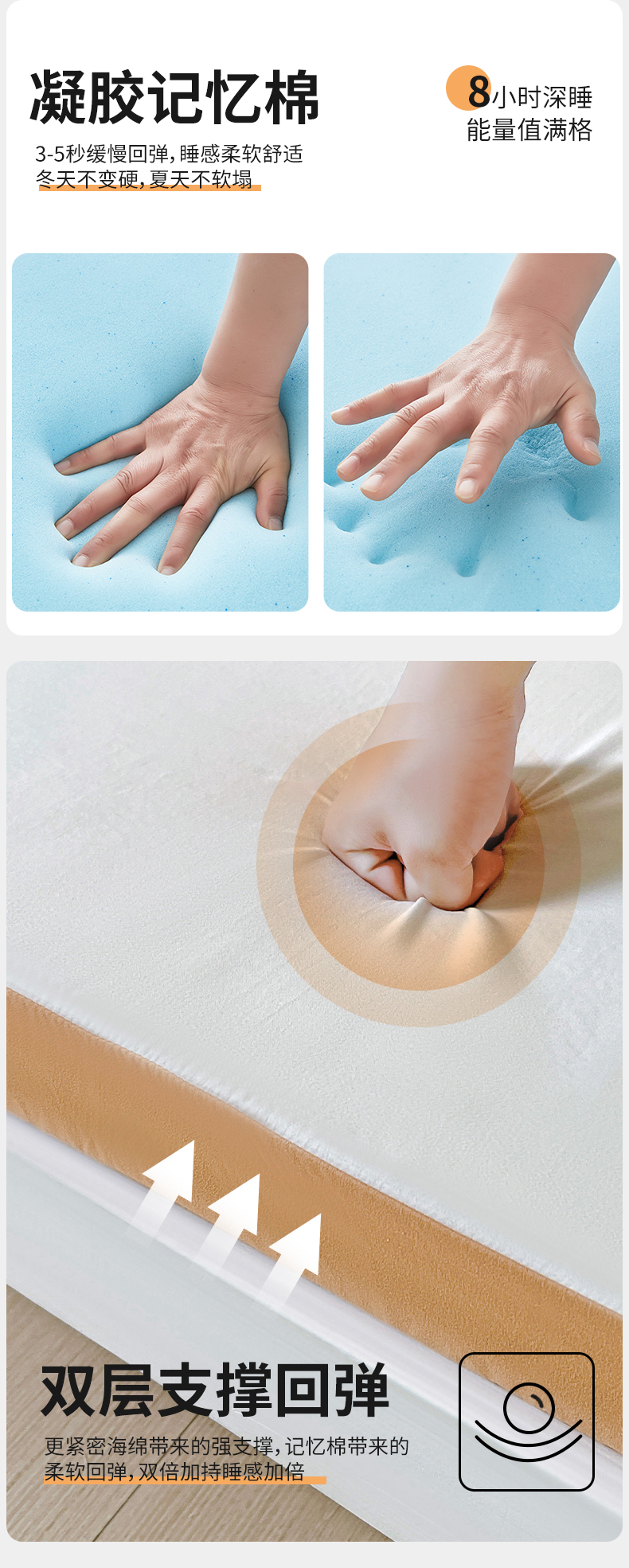 (总)小豚鼠 2025新款凝胶记忆棉床褥榻榻米记忆棉学生床上下铺床垫薄垫,本白色
