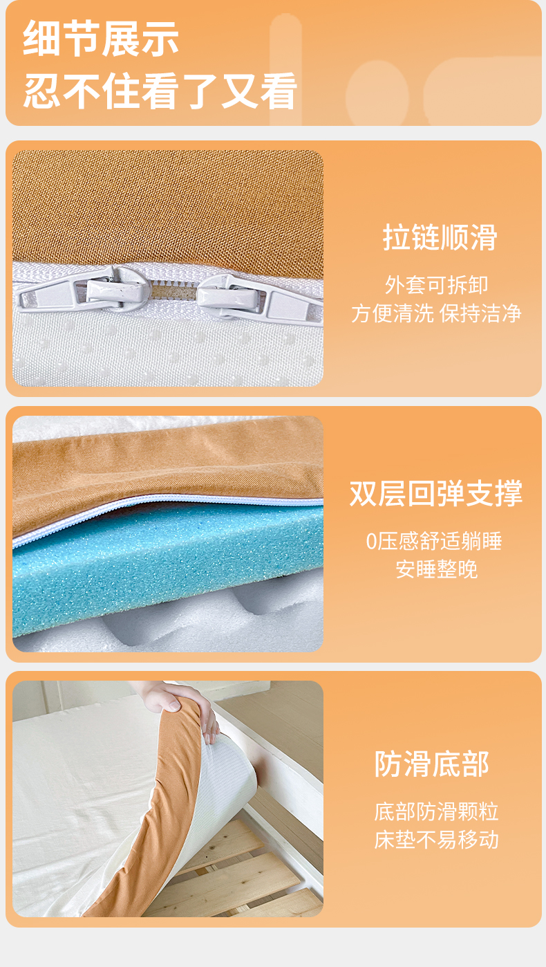 商品名称:小豚鼠 2025新款学生季蛋壳压花床垫记忆棉床垫学生宿舍软垫海绵垫子 活力橙