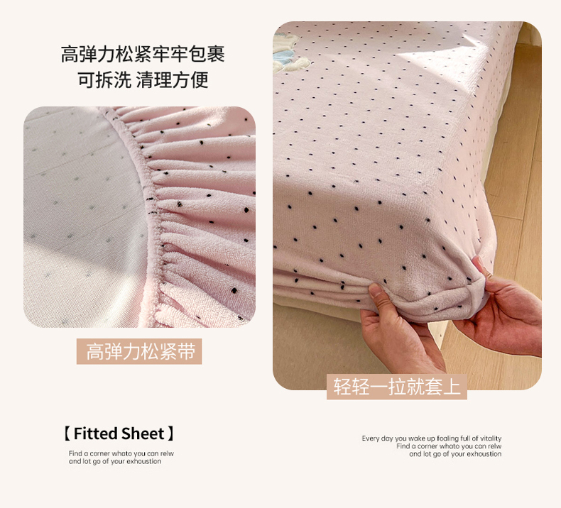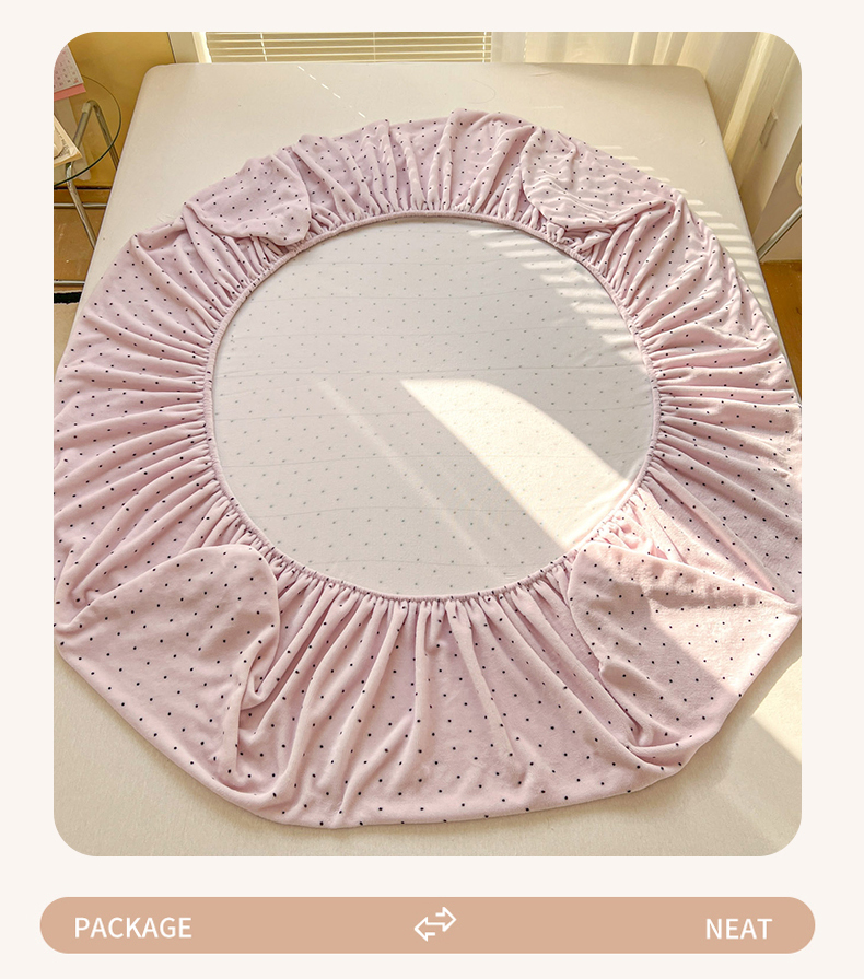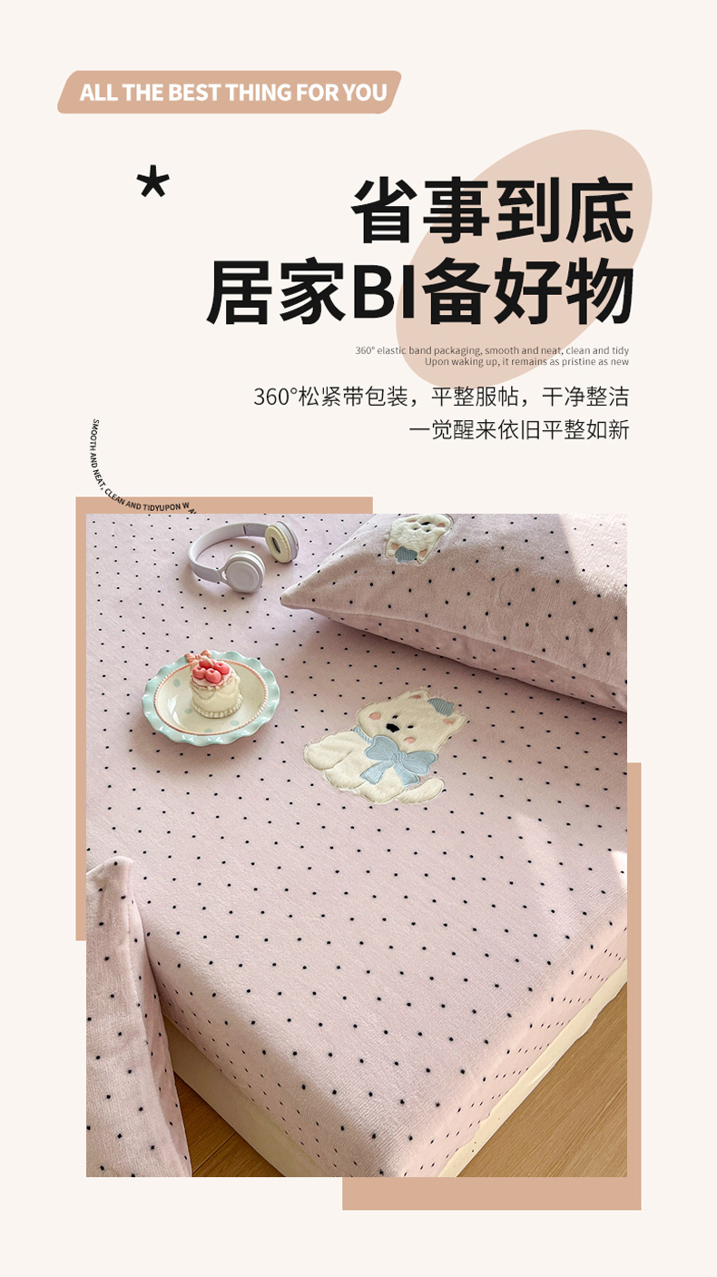 • 91家纺网 家纺一手货源 找家纺 十里居 2026新款韩系牛奶绒兔毛贴布绣床笠三件套四件套 波点小狗粉
