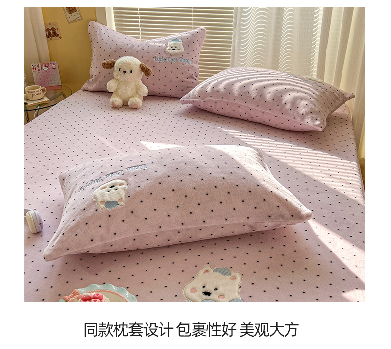 当前位置: 91家纺网 > 商品网购 > 床上用品 > 床笠 > 十里居 2026新款韩系牛奶绒兔毛贴布绣床笠三件套四件套 波点小狗粉