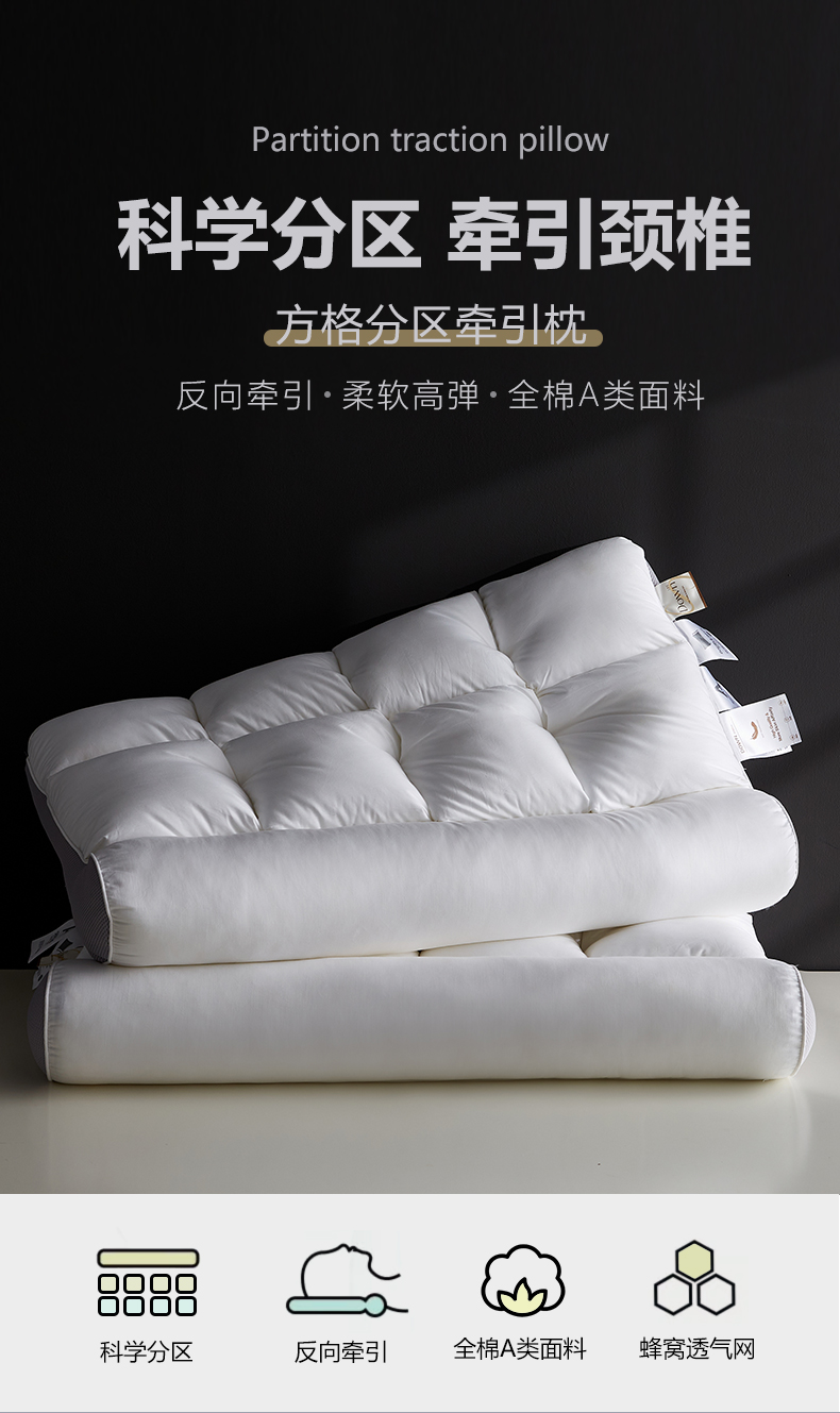(总)乐可 2025新款A类全棉方格分区牵引枕枕头枕芯-风格一,方格分区牵引枕