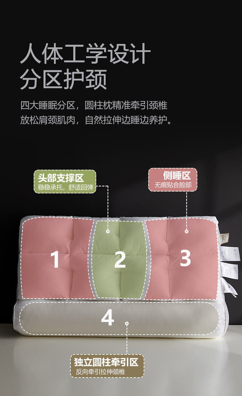 (总)乐可 2025新款分区两用牵引枕全棉双向枕 枕头枕芯,分区两用牵引枕