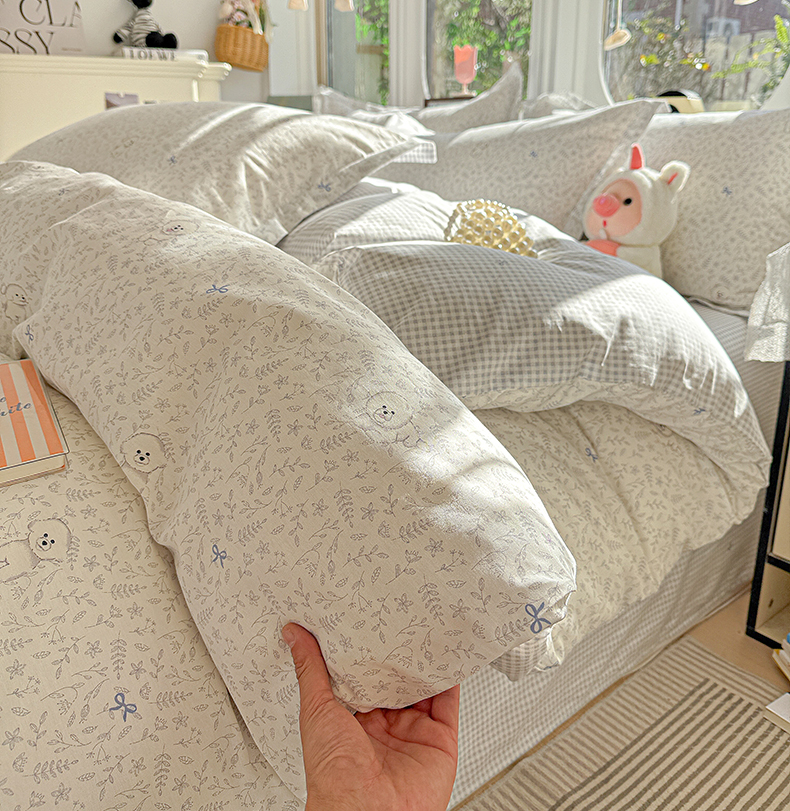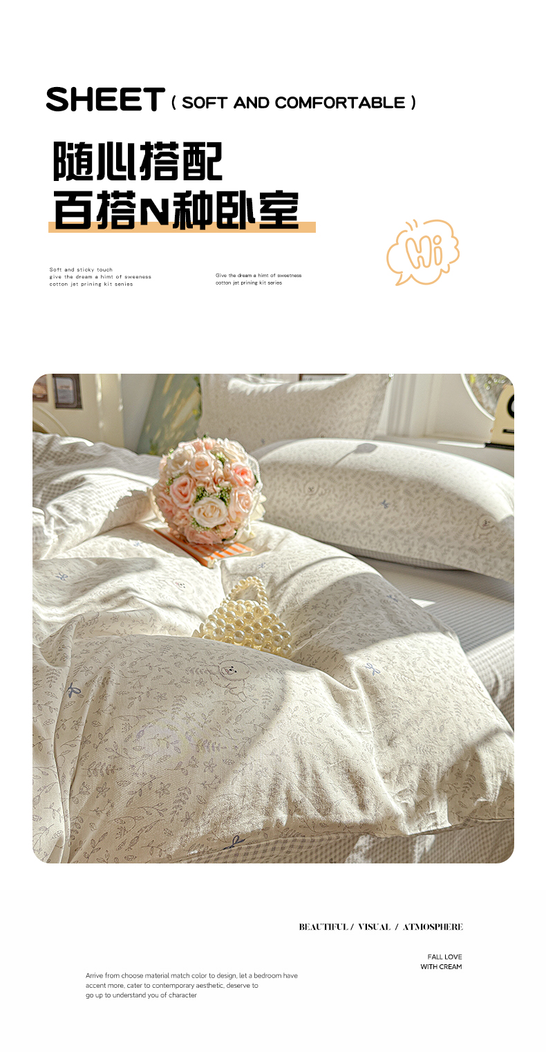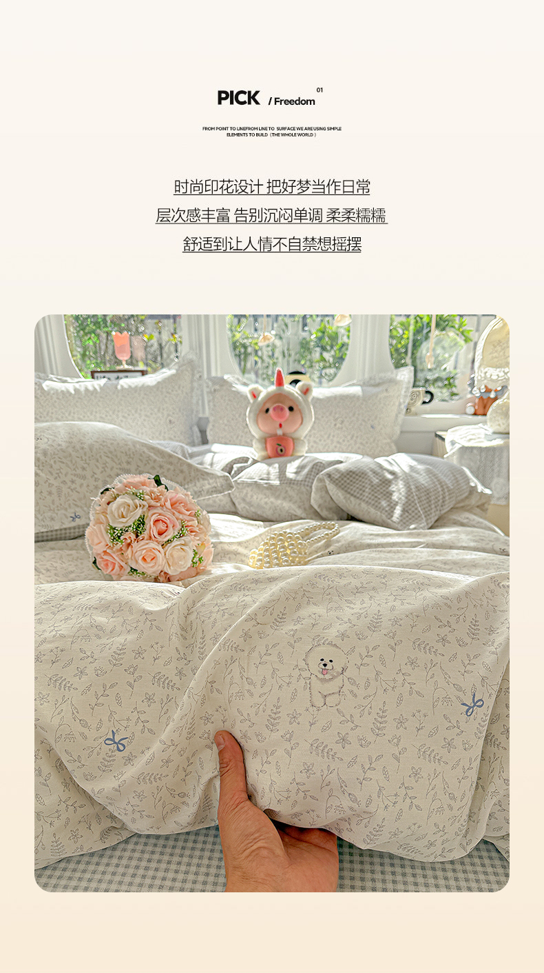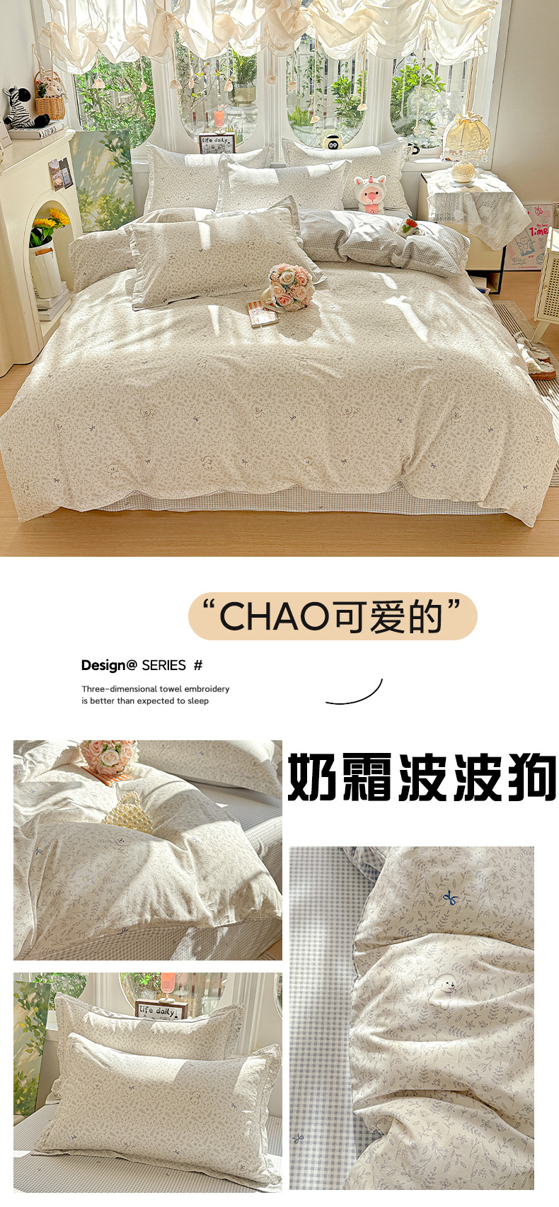 当前位置: 91家纺网 > 商品网购 > 床品套件 > 四件套 > 全棉普通四件套 > 卡普纯棉全棉四件套13070喷气床单款床笠款三件套 奶霜波波狗