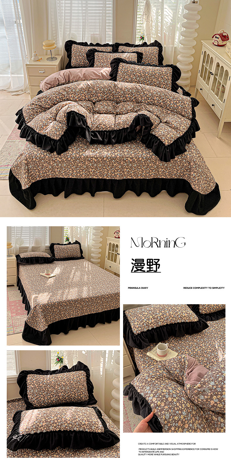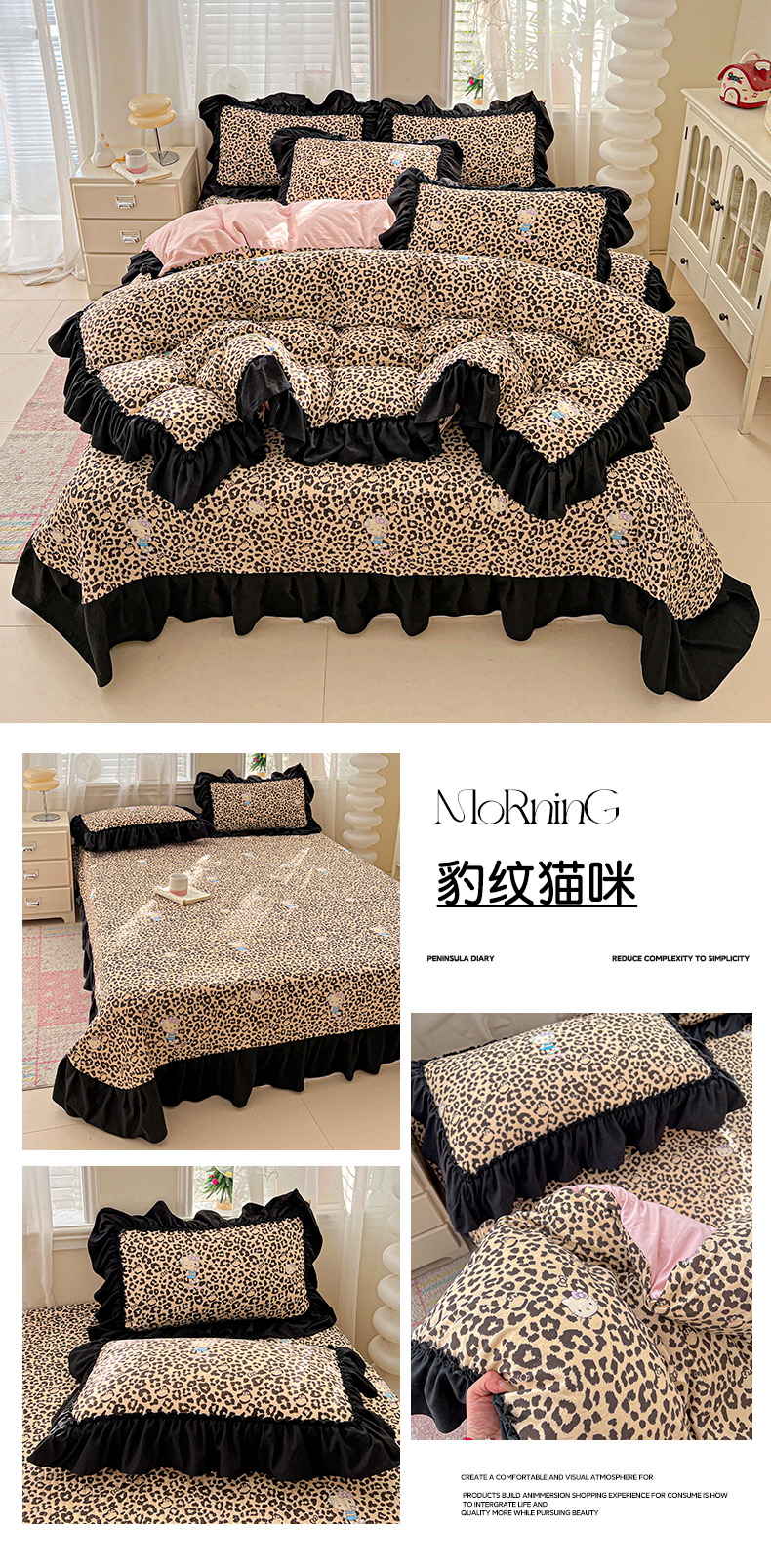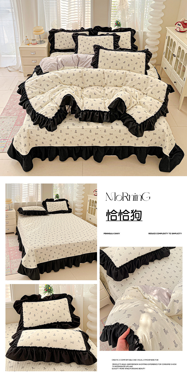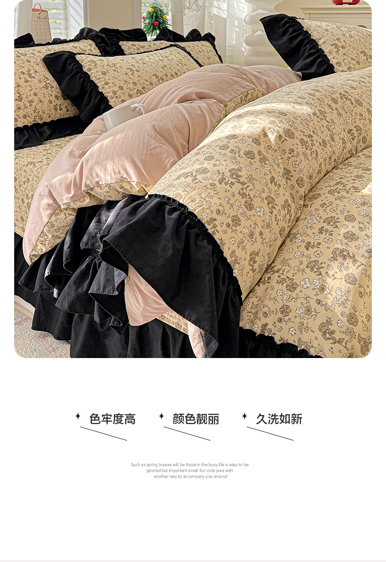 (总)富米莱(原臻工厂) 2026新款法式赫本风大花边A类古法仿棉云感纱床盖床裙四件套-场景二,豹纹猫咪,狗狗家族,花间谣,花影浅吟,花语玫瑰,槿上花开,卡布奇诺,兰絮语,漫野,恰恰狗,午后时光,雾蓝小熊,小玫瑰,星河入梦,知否