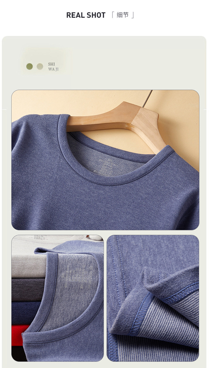 良品汇馆 2026新款【加厚德绒男内衣】德绒保暖内衣圆领男士秋衣秋裤套装羊毛蚕丝加厚新款 德绒男-藏青