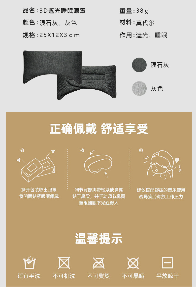 当前位置: 91家纺网 > 商品网购 > 居家日用 > 其他分类 > 良品汇馆 2026【莫代尔全包眼罩】莫代尔遮光眼罩良品全包裹居家旅行便携眼罩午休透气眼罩 莫代尔夹棉眼罩-深灰色 25x12x3cm
