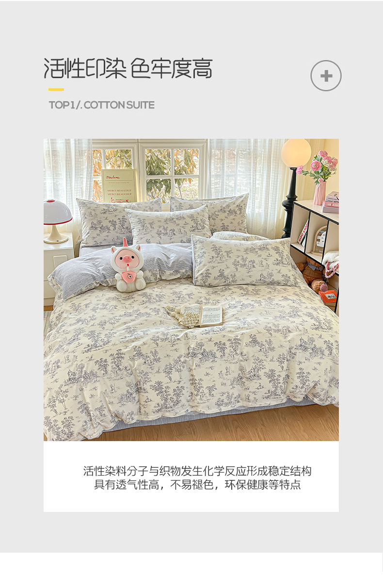 当前位置: 91家纺网 > 商品网购 > 床品套件 > 四件套 > 全棉普通四件套 > 瑞莱 2026新款全棉印花13070花卉系列四件套 梵夕