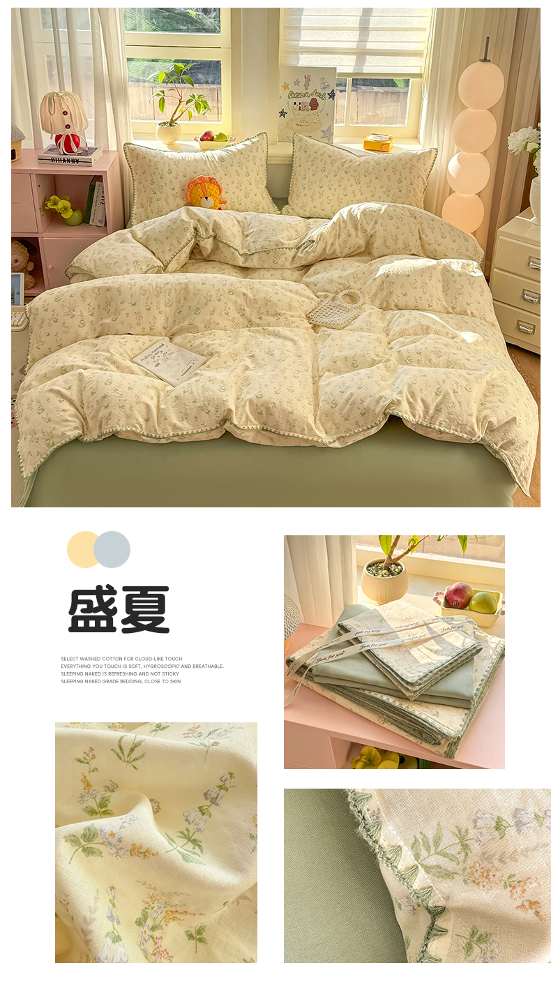 (总)对白 2026新款ins风全棉色织水洗棉纯棉简约极简格子系列四件套-草莓奶昔【提供买家秀】,草莓奶昔(枕套格子+小花),草莓奶昔(枕套小花),草莓奶昔(枕套格子)