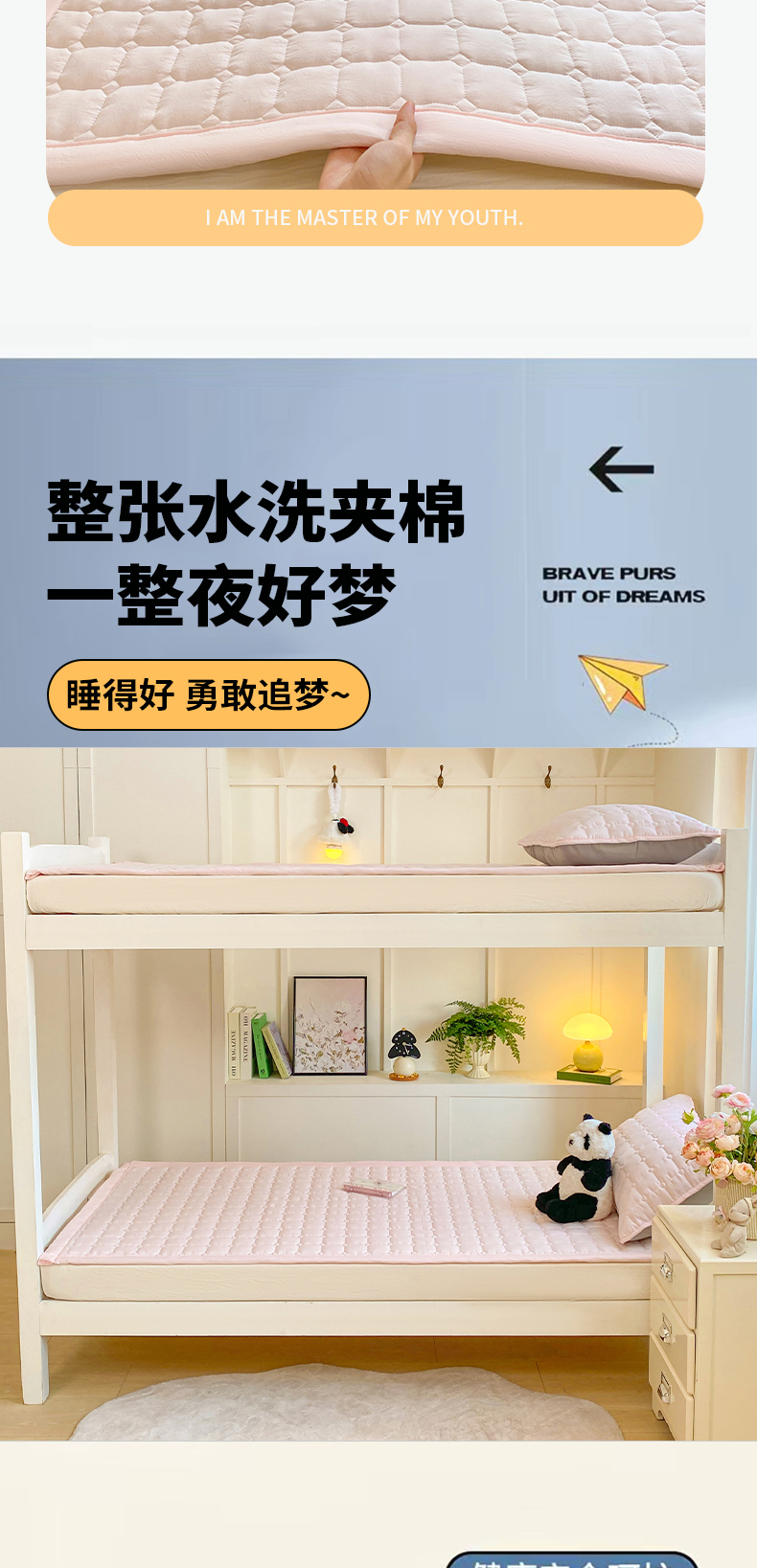 当前位置: 91家纺网 > 商品网购 > 床垫/床褥 > 普通床垫 > 麒东家纺 2026新款学生纯色水洗棉夹棉床垫系列 玉色