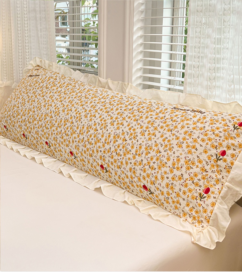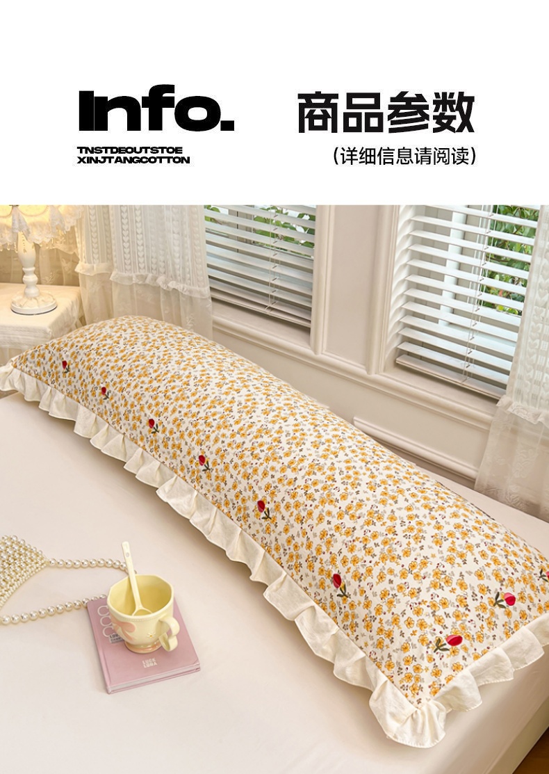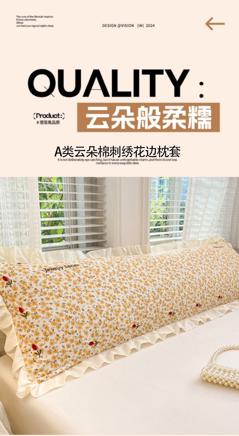 商品名称:梦舒羽 2026新款A类云朵棉刺绣花边枕套宿舍情侣绣花双人加长枕芯内胆套 春日暖阳(刺绣款)
